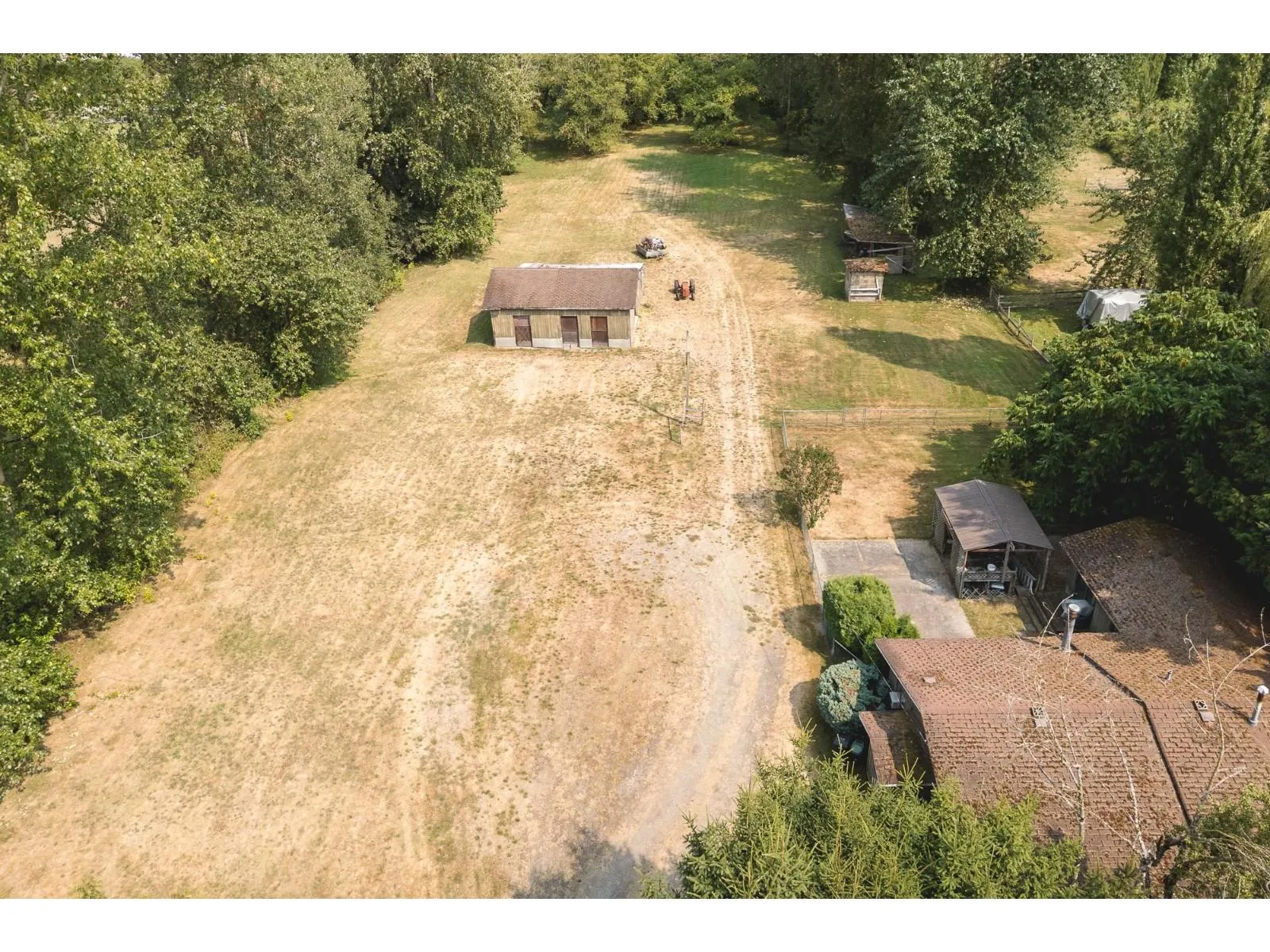 Beautiful, Flat & Private 2-Acre Property in South Langley. Located in the ALR and zoned RU-1, this prime parcel offers the perfect opportunity to build your dream home. The property features a charming 3-bedroom rancher-ideal to live in while you build-plus a 3-stall barn, workshop, and a covered lean-to for additional storage. Natural gas is already on the property, and