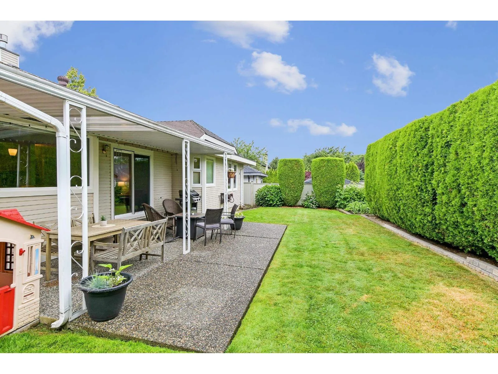 +"PublicRemarks": "Rancher in one of Fleetwood's nicest neighbourhoods. Spacious one-level living on a quiet treelined cul-de-sac in Hazelwood Grove. Walk to Fleetwood Park and William Watson Elementary. Ideal if you're either Empty Nesters Down-sizing from a large house, or a young family up-sizing from a strata. The level lot is low maintenance, yet beautifully landscaped. The backyard is fully fenced, to keep your little ones and pets safe. There is even a cute shed for extra storage. You will enjoy entertaining on the large covered patio off your family room. The kitchen features stainless steel appliances, including a gas stove. There are two gas fireplaces to keep you cozy in the winter months and A/C to keep you cool in the summer. (id:62650)"
