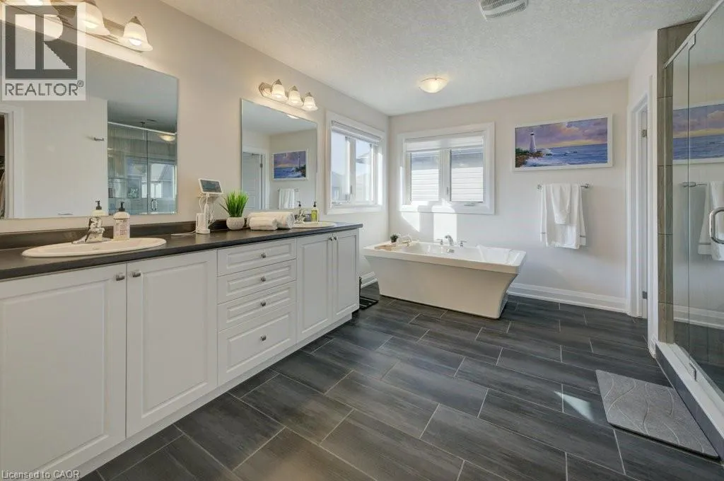 +"PublicRemarks": "Welcome to Your Dream Home in Prestigious Kiwanis Park! Built in 2018 and located in one of Kitchener's most desirable neighbourhoods, this beautifully designed home offers an exceptional layout, premium finishes, and unbeatable access to both nature and city conveniences. A concrete driveway and striking curb appeal welcome you into a spacious front foyer, setting the tone for the impressive interior. The main floor features a sun-filled open-concept living space with a custom media wall and sleek gas fireplace—perfect for relaxing or entertaining. The modern kitchen is loaded with quartz countertops, stainless steel appliances, a pantry, and an oversized island with seating. A convenient 2-piece bath and main-floor laundry add ease to everyday living. Upstairs, enjoy a large family room—ideal for a playroom, media lounge, or home office. The primary suite is a true retreat, featuring a spacious walk-in closet and a luxurious 5-piece ensuite complete with a separate tiled shower with glass doors, a soaker tub, and a double vanity. Two additional bedrooms share their own spacious 5-piece bathroom, thoughtfully designed with a vanity and sink on each side, and a separate door leading to the toilet and shower area—ideal for shared use and added privacy. Step outside to a covered deck that extends your living space into the backyard—perfect for outdoor dining and lounging. The large unfinished basement offers endless potential for future development. All of this within walking distance to Kiwanis Park, scenic trails, expansive green spaces, and the Grand River. You're just minutes from both universities, Conestoga Mall, Highway 85, and with quick access to the 401. This is your chance to own a modern, move-in-ready home in one of Waterloo’s most family-friendly and nature-rich communities—don’t miss it! (id:62650)"