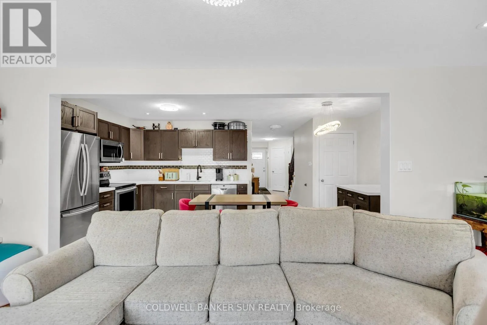 +"PublicRemarks": "Freshly Painted Freehold Townhome In Quiet Family Neighborhood That Is Walking Distance To Downtown, Schools, Parks. Approx 1400 Sqft Of Well Laid Out Open Concept Living Space, Upgraded Kitchen Quartz Countertops & Cabinetry, Island With Breakfast Bar, Entry Accent Wall Plus Accent Tv Wall with Electric Fireplace In Great Room, Huge Master With Ensuite & Walk-In Closet, Upgraded Cabinetry In Master & Main Bathrooms, Stained Railing With Extra Pickets And Lots More... (id:62650)"