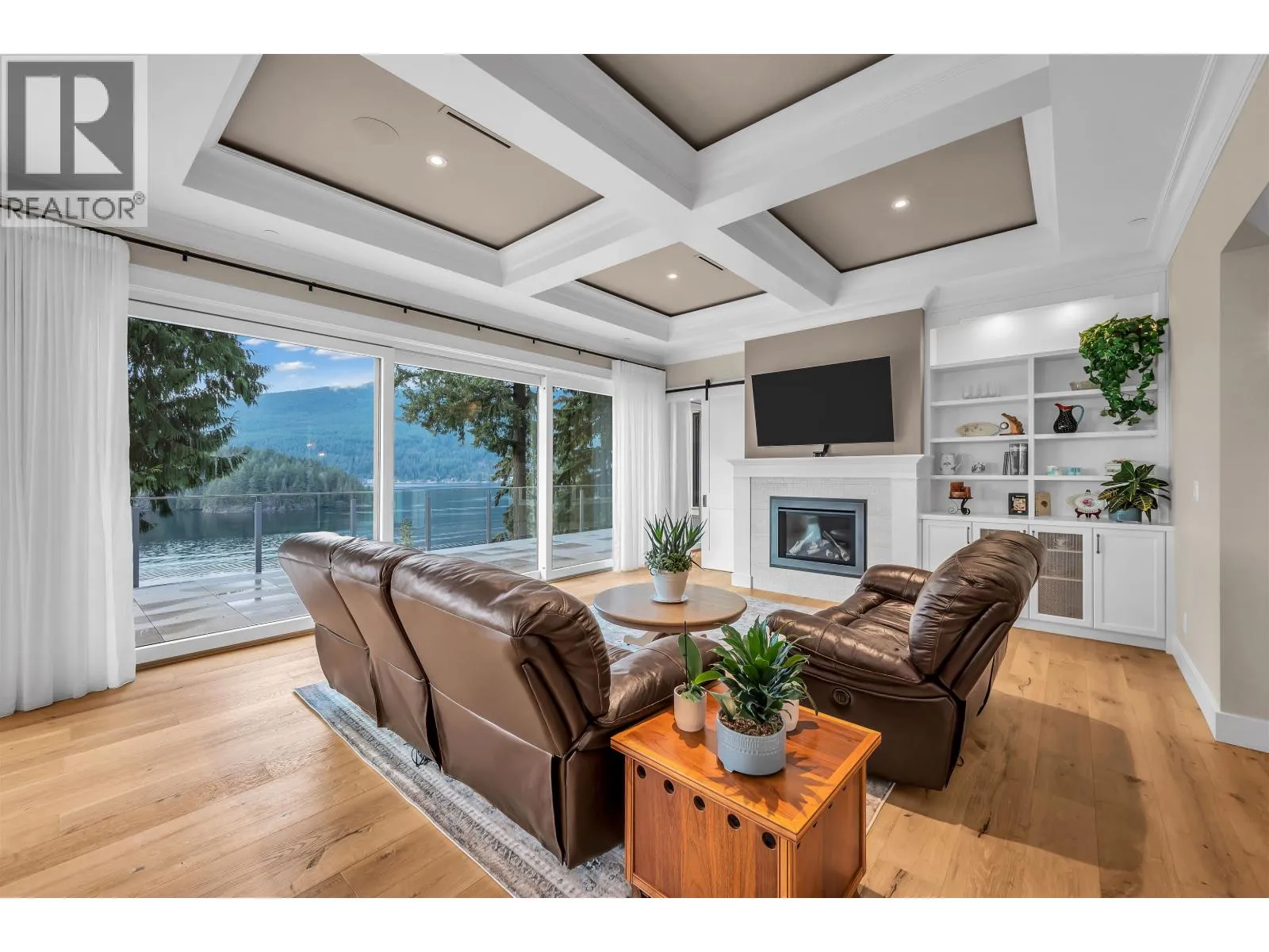 Exceptional Oceanfront Luxury Home with breathtaking Belcarra Bay views set on an outstanding 21,471 sq. ft. waterfront lot with a private shared 60-ft dock and new lift. This nearly new custom residence offers 5,498 square ft of refined living space built with premium materials. The home features rustic white oak flooring, travertine tile, custom millwork, built-in shelving, and elegant coffered
