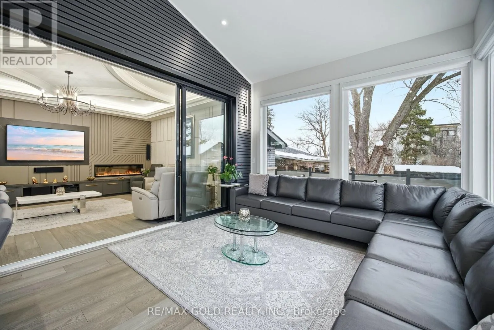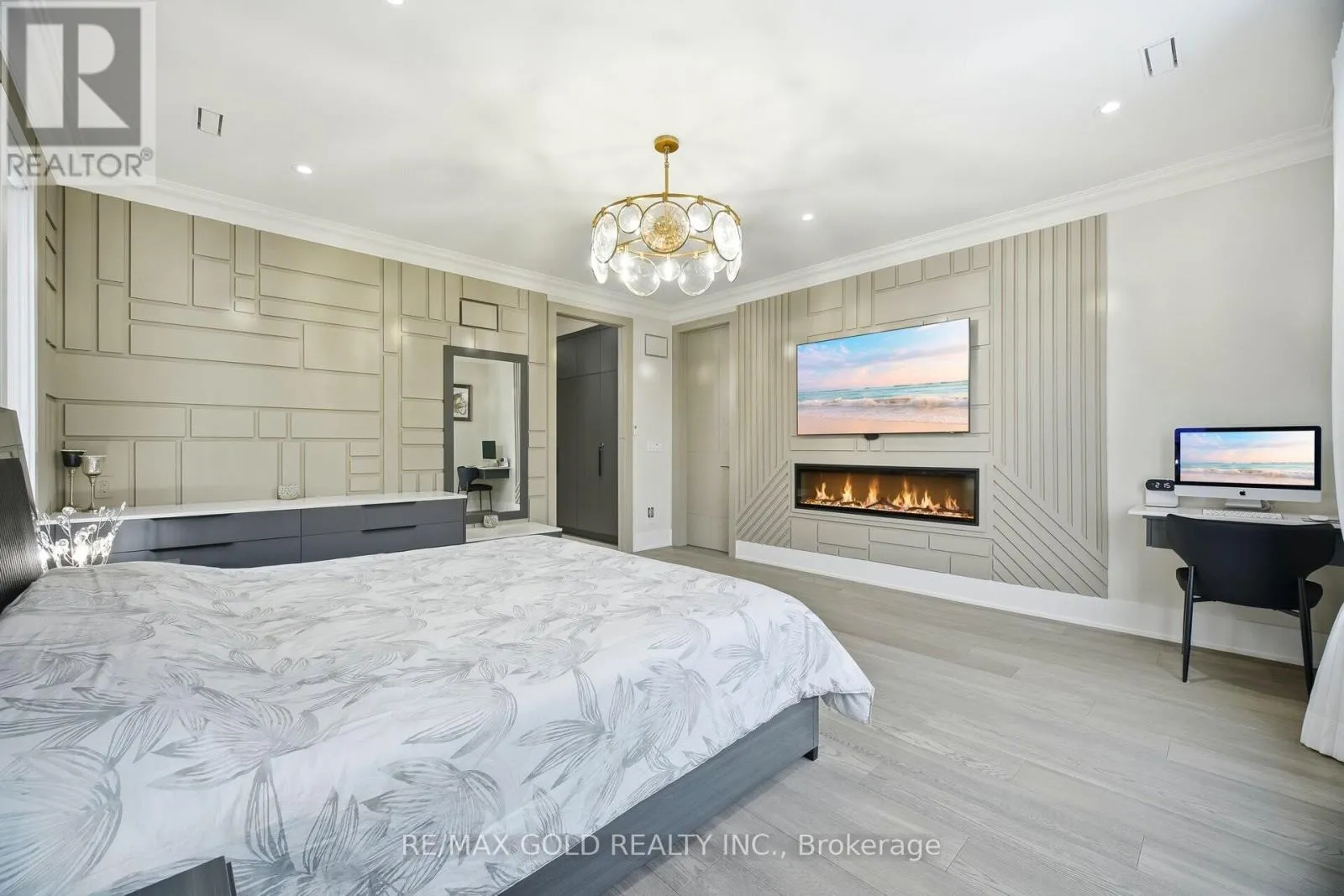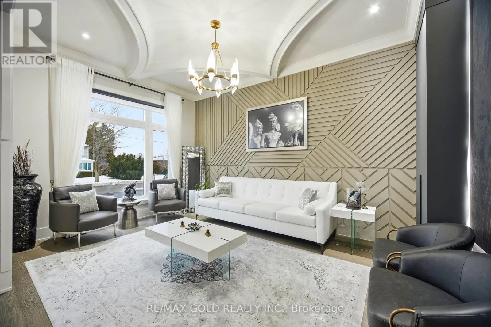 +"PublicRemarks": "Experience refined living at its finest in this extraordinary custom-built estate, where timeless elegance meets superior craftsmanship. From the moment you step through the beautifully landscaped stone-walled courtyard and into the grand foyer, every detail speaks to exceptional quality and thoughtful design. Soaring cathedral ceilings with three skylights bathe the interior in natural light, while striking wrought iron and oak floating staircases add architectural drama and sophistication. This five-bedroom residence offers a seamless blend of luxury and comfort, featuring multiple stone and wood-burning fireplaces, rich crown moulding throughout, and spa-inspired marble bathrooms. The intelligently designed layout is both spacious and functional, ideal for everyday living and lavish entertaining. A rare 4-car garage, with total parking for up to 12 vehicles, provides ample space for guests and family alike. The fully finished lower walkout basement is a true retreat, complete with a private fitness studio, an elegant recreation lounge with custom made wet bar, a relaxing spa room, sauna, and a cozy fireplace, perfect for unwinding or hosting in style. A rare opportunity to own a home where elegance, warmth, and comfort come together in perfect harmony. (id:62650)"