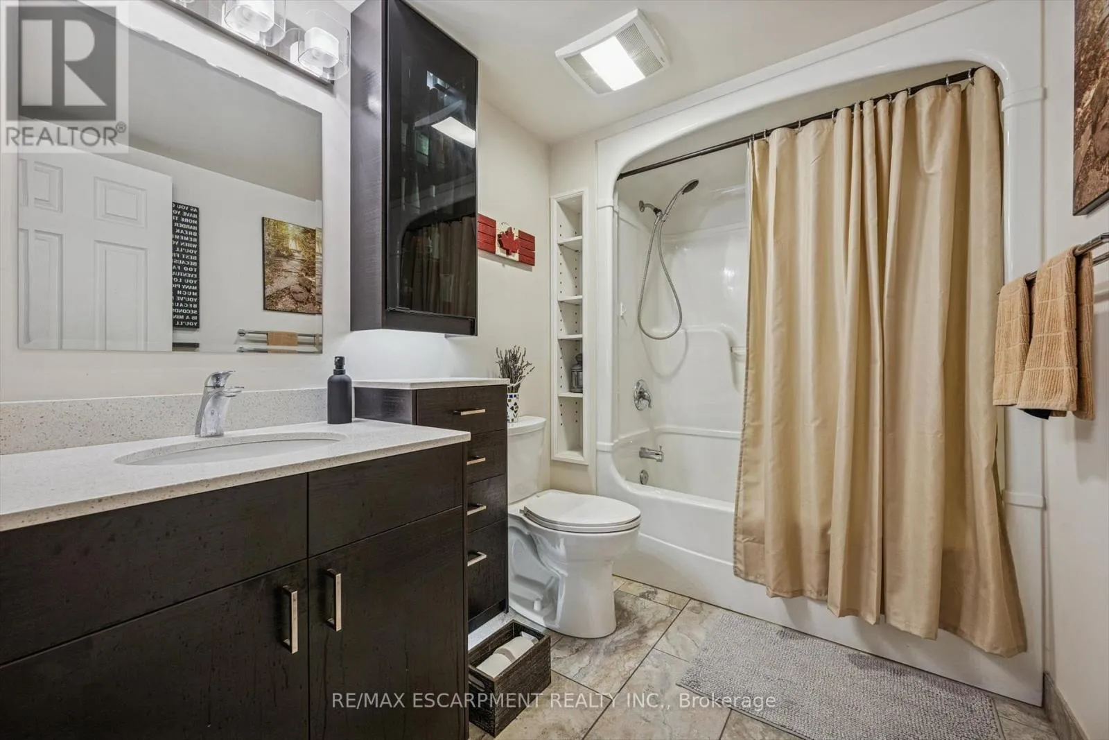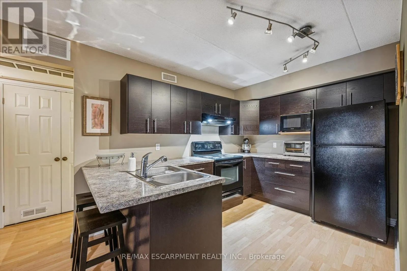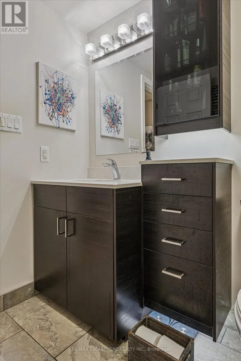 +"PublicRemarks": "Great value! Discover this 2 bedroom 1 bath condo with rare private forest-facing balcony in Burlington's sought-after Forest Chase community in the heart of Headon Forest. The bright, open-concept living space includes a dining area, and features light laminate flooring, upgraded trim and casings and is painted in neutral colours. The modern and upgraded kitchen features dark hardwood-style cabinets, soft-close cabinets and drawers, a built-in range hood, and an overhanging counter for a convenient breakfast bar. The spacious primary bedroom has a double closet and a large picture window overlooking the treetops. The 2nd bedroom also includes a large window and closet. The custom-refinished 4 pc bathroom features quartz counters, ceramic floors, a clean vinyl surround tub & shower insert, lots of cabinet space and modern floor and under-cabinet lighting acting as perfect night-lights. The bright living area walks out to a private balcony that faces west and gets the afternoon sun, beautiful views of a quiet forested ravine, and gorgeous sunsets in the winter months. And there is ample space for chairs and a BBQ. Other features include a new bedroom window, new French balcony door and front door, newer balcony railing, a hideaway stacked washer/dryer closet and stylish overhead lights. A large locker is included and the underground parking space is privately owned. Great location in central Burlington, close to shopping, parks and highway access! (id:62650)"