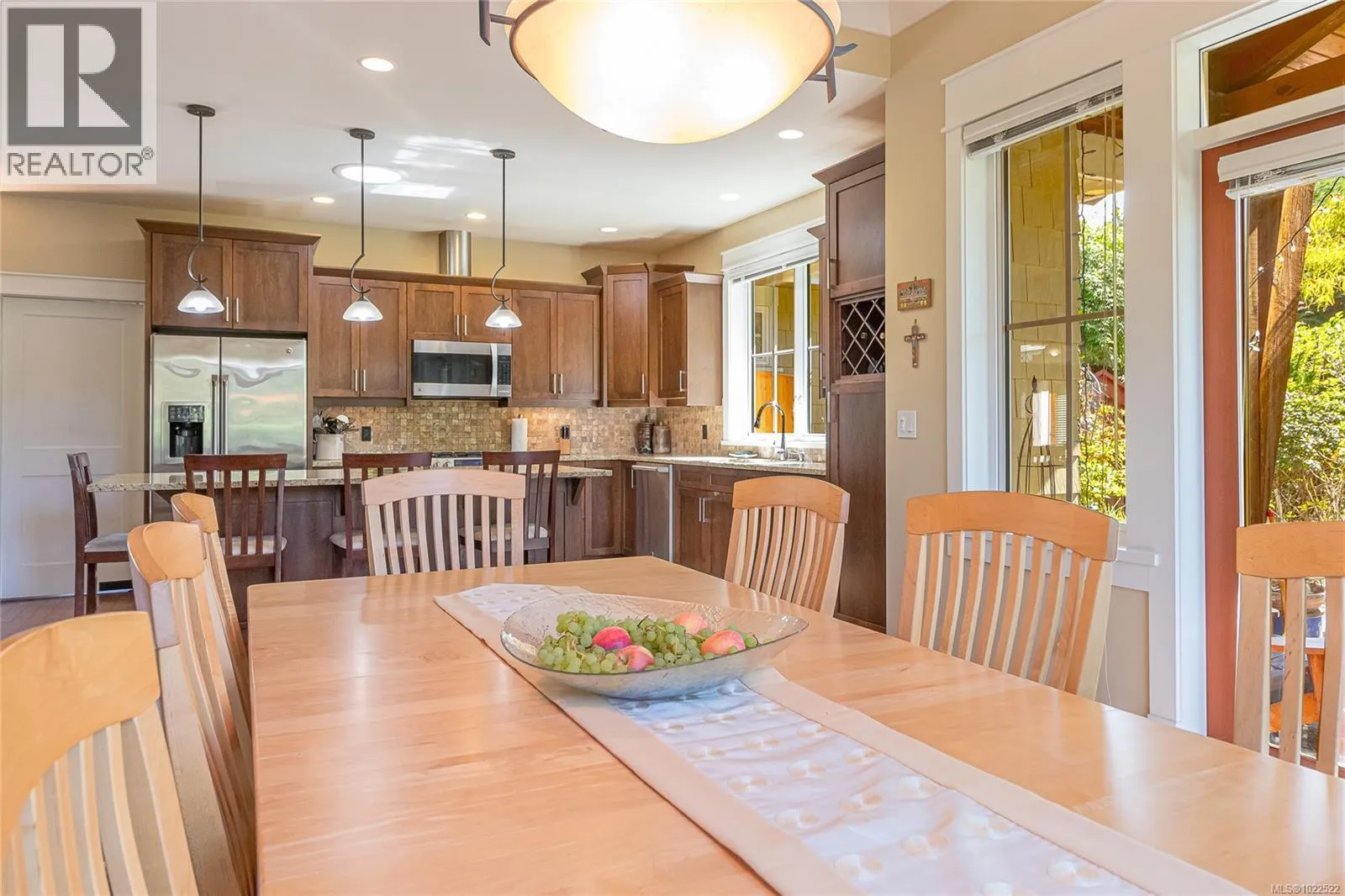 Craftsman Charm in Central Qualicum Beach Built by Klobchar, this timeless Craftsman-style rancher sits on a generous corner lot, surrounded by beautifully designed English cottage gardens. Timber frame accents, shake siding, and lush landscaping create an inviting first impression. Covered patios extend from the living room, dining room, and primary suite, blending indoor and outdoor living—ideal for entertaining or quiet