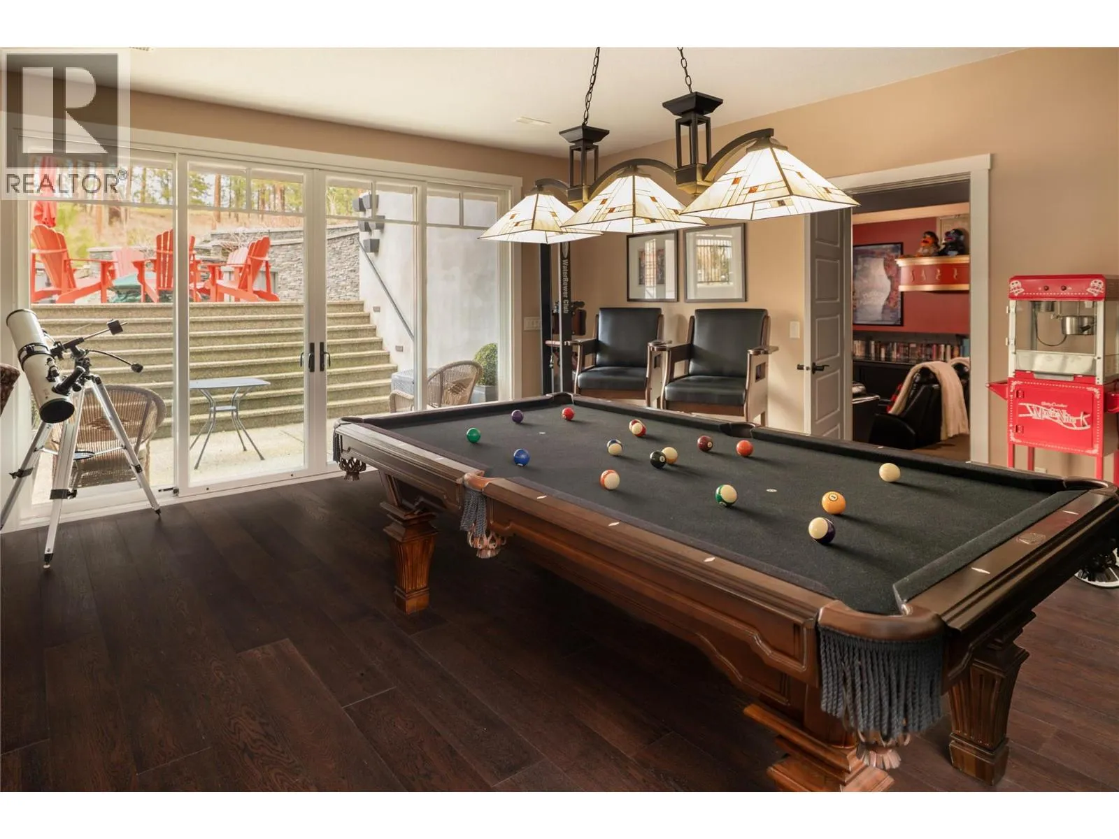 +"PublicRemarks": "Privately positioned in an exceptionally quiet setting with no neighbours in front or behind, this thoughtfully designed residence is surrounded by mature trees and meticulous landscaping, offering a rare sense of seclusion. Built with longevity and quality in mind, the FireSmart Hardie Board exterior, concrete tile roof, Loewen windows, and handcrafted fir front door set the tone for the level of finish carried throughout. Engineered hardwood flooring, solid core doors, and all-wood casings create a cohesive, timeless interior. The kitchen is the heart of the home, featuring Brazilian soapstone countertops, solid maple cabinetry, an expansive custom island, six-burner gas range, Thermador appliance package, and a dedicated beverage centre. Indoor-outdoor living is seamless with a covered upper deck complete with gas fireplace and BBQ hookup. The walk-out lower level offers impressive ceiling heights, a custom wet bar, gas fireplace, theatre room, and access to a private patio with Beachcomber hot tub and Restoration Hardware fire bowl. A hybrid heat pump/gas furnace, EV-ready 3 car garage, grade-level windows, and thoughtful accessibility features further enhance this exceptional home designed for comfort, privacy, and everyday enjoyment. Set within the prestigious Gallaghers Canyon community, residents enjoy an unmatched lifestyle with world-class golf, scenic walking trails, and a strong sense of community—just minutes from Kelowna’s amenities. A rare combination of privacy, craftsmanship, and lifestyle — this is a must-see to be fully appreciated. (id:62650)"