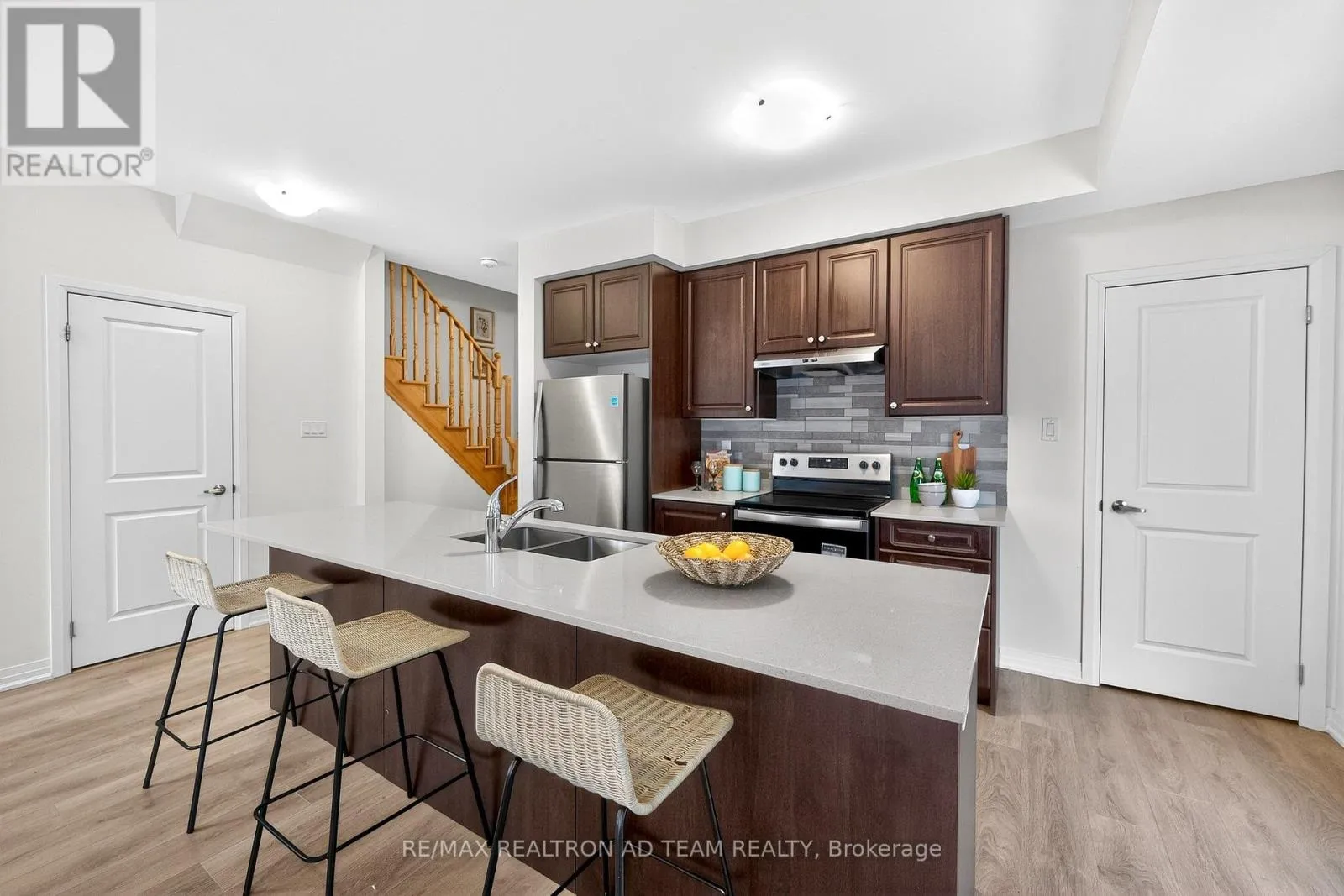 +"PublicRemarks": "Bright And Spacious End-Unit Townhome Featuring A Functional Open-Concept Layout With A Lot Of Natural Light. Laminate Flooring Flows Throughout The Ground And Second Levels, Complemented By Hardwood Staircase And Smooth Ceilings Throughout. The Great Room Is Ideal For Entertaining And Offers A Walk-Out To A Private Balcony. The Modern Kitchen Boasts A Large Island With Quartz Countertops, Stylish Backsplash, Upgraded Taller Cabinetry, And A Pantry For Added Storage. The Primary Bedroom Includes A Double Closet, A Dedicated Reading/Office Nook, Walk-Out To A Balcony, And An Upgraded 3-Piece Ensuite With A Sleek Glass Shower. Enjoy A Generous Ground-Level Rec Room, Interior Access To The Garage, And A Rough-In For An Electric Car Charger. Ideally Located Just Steps To Shopping, Schools, Parks, Recreation Centre, Restaurants, And Gym, With Quick Access To Hwy 401, 412, And 407. Whitby GO Station Is Only A Short Drive Away, Perfect For Commuters. A Must-See Home In A Prime Location! **EXTRAS** S/S Fridge, S/S Stove, S/S Dishwasher, Washer, Dryer, All Light Fixtures & CAC. Water Heater Is Rental. (id:62650)"