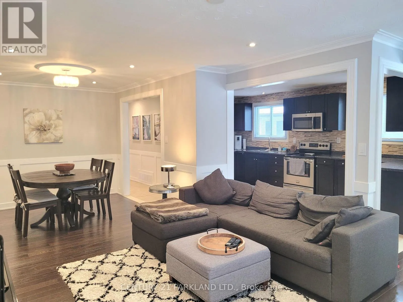 +"PublicRemarks": "Welcome to this bright & beautifully maintained 3-bedroom, 1-bathroom main floor unit offering 2 side-by-side parking spaces and a private front entrance. Absolutely spotless & move-in ready, this home features tons of natural light, hardwood floors, Crown Moulding, Wainscotting, smooth ceilings with pot lights, a large front balcony and an Updated Kitchen w/Stainless Steel Appliances & an open concept Design. A fantastic opportunity in a convenient and family-friendly community. Enjoy this prime location! Steps to shopping, excellent schools, transit, parks, and major highways, with easy access to the new Metrolinx Finch West LRT. Must Provide Rental Application, Letter Of Employment & Full Credit Report (id:62650)"
