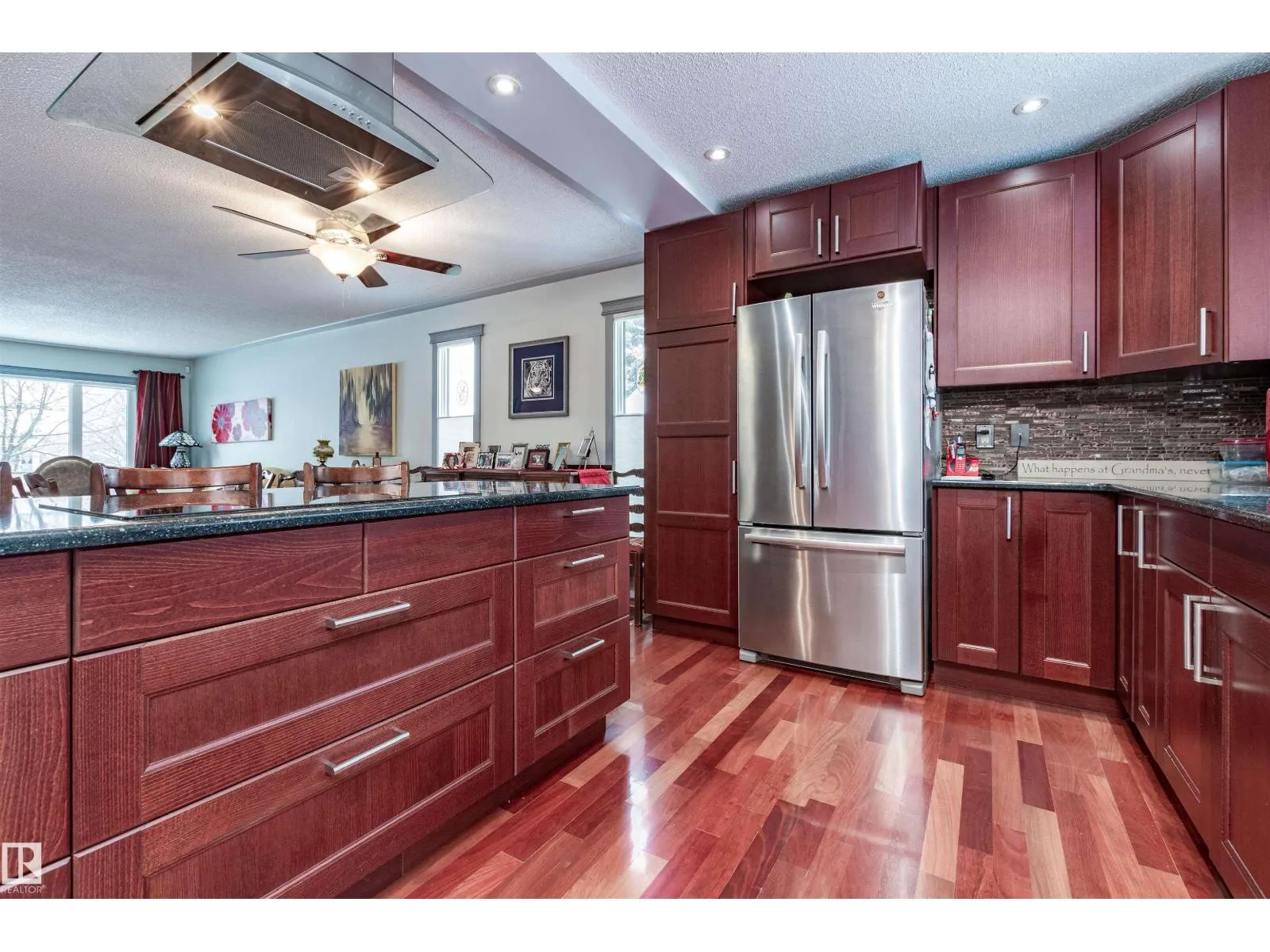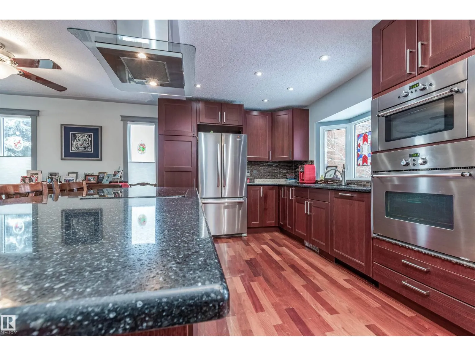 One of a kind home showcasing exceptional design and upscale finishes throughout. Gorgeous Brazilian cherry hardwood, solid maple interior doors! A gourmet kitchen with quartz countertops, abundant cabinetry, large island, and open to dining area flowing into the spacious living room. A sunken family room provides a warm and inviting ambiance with gas fireplace and garden door that opens to