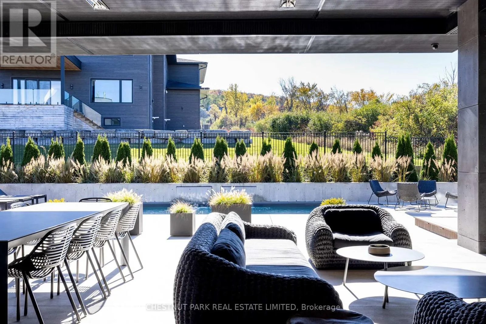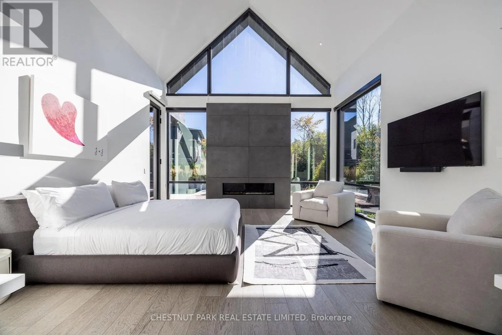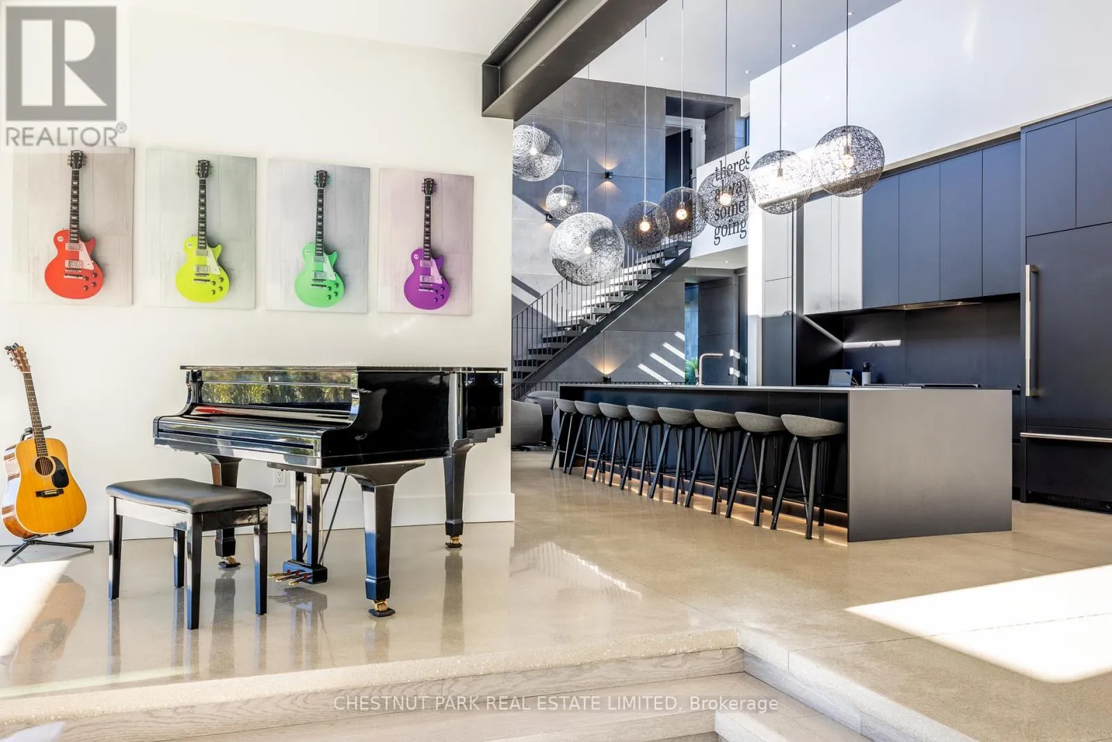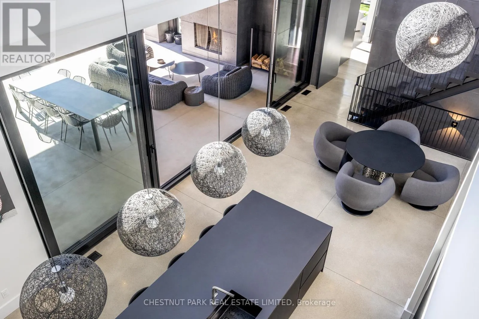 Architecturally stunning custom home in the exclusive Camperdown community, a coveted year-round golf, ski, and outdoor playground that epitomizes four-season living in Southern Georgian Bay. Over 9,000 sq.ft. of refined living space with soaring 20-ft ceilings, exposed beams, heated polished concrete floors and dramatic floor-to-ceiling windows that flood the interior with natural light. The sunken great room with a 24-foot