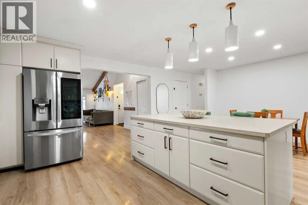 +"PublicRemarks": "Welcome to this bright and beautifully updated bungalow in the heart of Deer Run, just steps from the incredible pathways and natural beauty of Fish Creek Park. Vaulted ceilings and an inviting open layout create a warm, airy feel throughout the main floor. The thoughtfully renovated open-concept kitchen features a large island, generous pantry space, and flows seamlessly into the living and formal dining areas and is perfect for everyday living and entertaining. Cozy up by the wood-burning fireplace or enjoy hosting family and friends in this welcoming space.The main level offers three spacious bedrooms, including a primary retreat with a 2-piece ensuite that can easily accommodate a shower, plus a large, updated main bath. Downstairs, the fully developed basement includes a comfortable family room, an additional bedroom, a 3-piece bathroom, a dedicated workshop area, and a separate laundry room. This space is ideal for guests, hobbies, or extended family living. Recent upgrades include a brand NEW FURNACE DEC 2025, HOT WATER TANK 2025, NEW ROOF 2021. Step outside to enjoy both a front and back decks with extra access from the primary bedroom. This yard is massive and incredibly private. There is also a convenient parking pad. This unbeatable location offers quick access to Deerfoot Trail and Macleod Trail, is close to schools and Deer Valley Shopping Centre, and is just minutes from Sikome Lake, a public lake with a sandy beach, playgrounds, and picnic areas. A fantastic opportunity to enjoy space, comfort, and one of Calgary’s best outdoor lifestyles! Call for a private viewing today. (id:62650)"