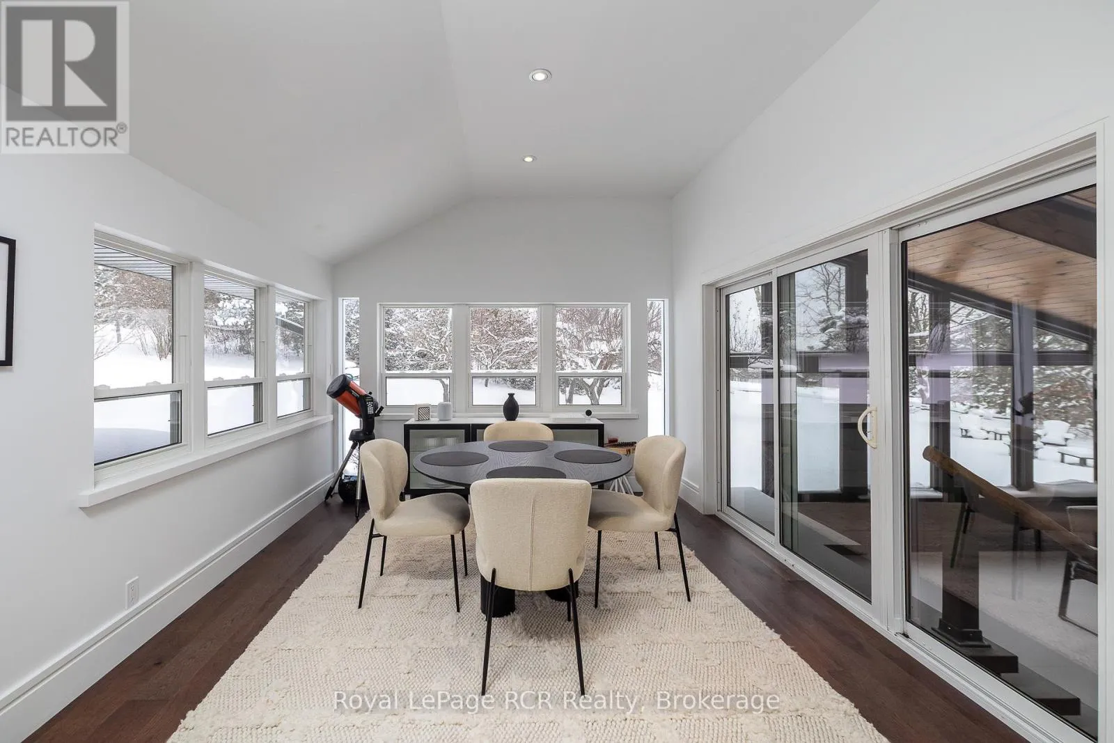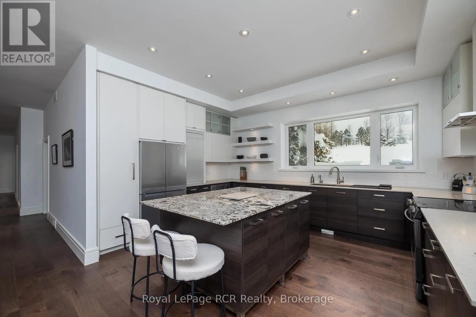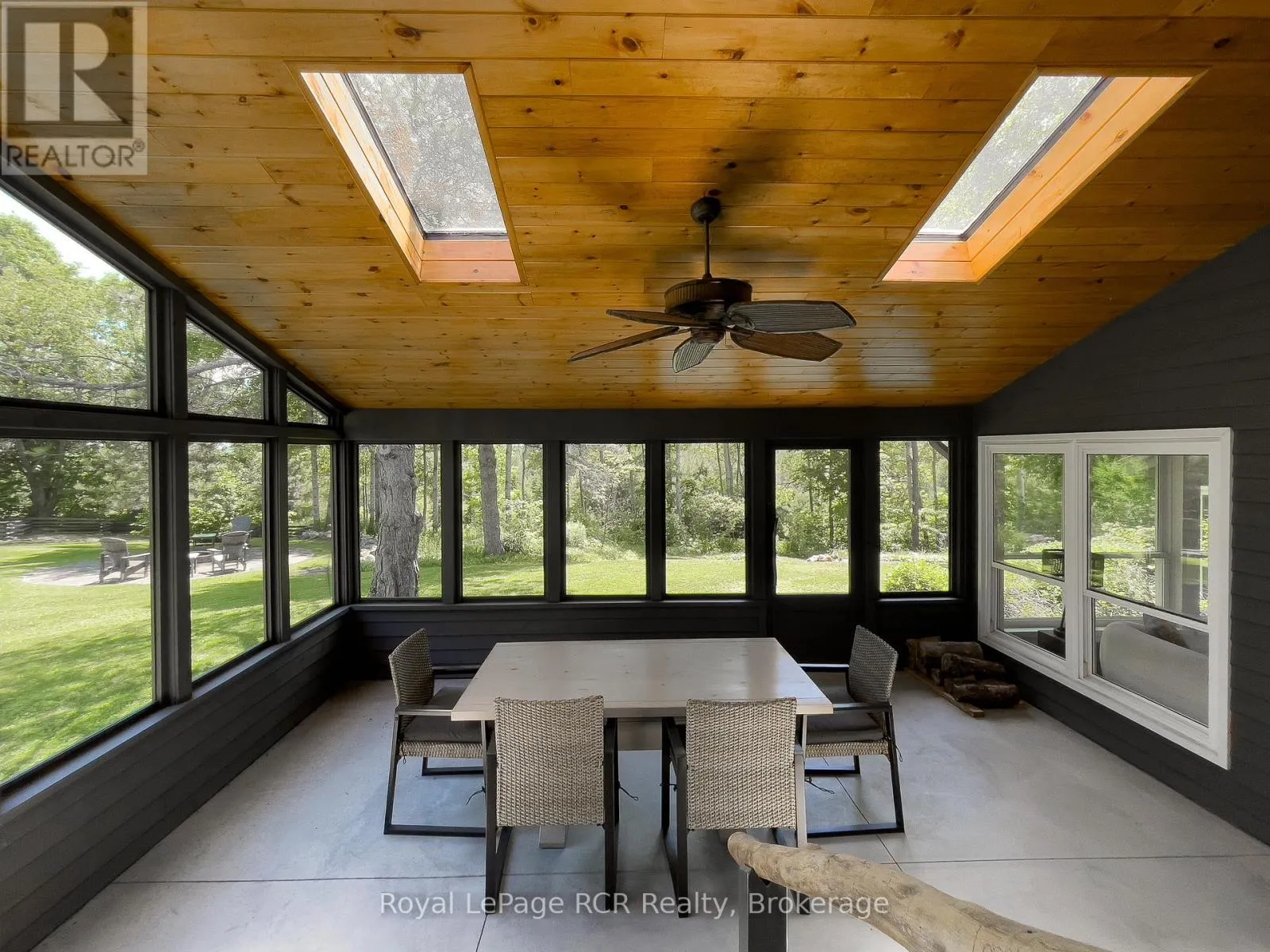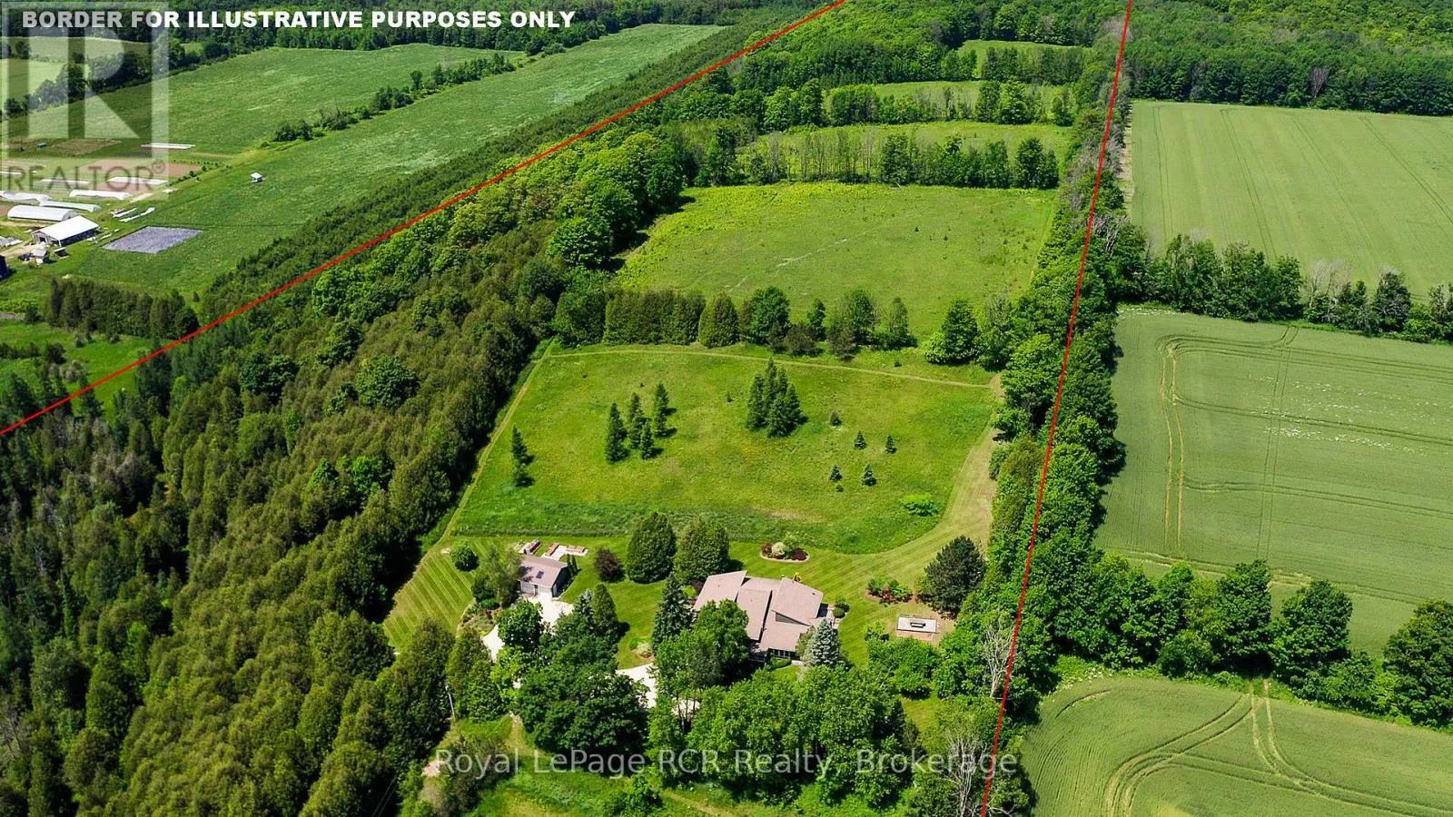 Luxurious contemporary home set on 50 scenic acres of mixed forest, meadows, and manicured outdoor living spaces. The main level features a sunken living room with gas fireplace, open dining area, and a chef’s kitchen with granite countertops, large island, abundant storage, and walk-out to a deck with natural gas BBQ. Adjacent are a bright dinette and screened porch for