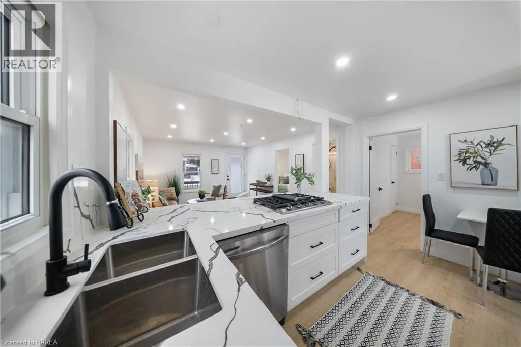 +"PublicRemarks": "Welcome to 111 Victoria Street, Brantford — a fully renovated showstopper set on an impressive 40' x 132' oversized lot, where no expense was spared. Professionally updated from top to bottom, this open-concept 2-bedroom, 1-bath home blends modern design with high-end finishes and is completely move-in ready. Step inside to a bright, stylish interior featuring new interior doors, newer windows, and pot lights throughout. The heart of the home is the brand-new premium kitchen, showcasing quartz countertops and backsplash, a deep stainless-steel sink, and high-end Samsung appliances—perfect for entertaining and everyday living. The exterior is just as impressive, boasting all-new exterior finishes and siding, exterior pot lights, a brand-new asphalt driveway, new front porch, and a new fence fully enclosing the property. The backyard is an entertainer’s dream with a massive concrete pad and spacious new deck, enhancing both curb appeal and outdoor enjoyment. Additional peace-of-mind upgrades include a newer furnace, air conditioner, and hot water tank. This is a rare opportunity to own a turnkey home on an oversized lot offering style, comfort, and exceptional outdoor space. 111 Victoria Street is truly made to impress, don't miss your chance to make this stunning home yours. (id:62650)"