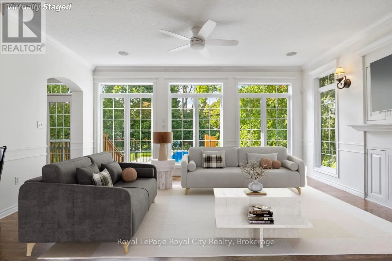 +"PublicRemarks": "168 Palmer Street is a 'must see'! Custom-built home perfect for families seeking both luxury and convenience. Located steps from St. Georges Park, this home is also just a short walk from downtown Guelph and the GO station and walking distance to all schools and shopping. With over 4,700 square feet of beautiful living space, this property was designed for modern living. The main floor features a welcoming front porch where you can relax with a glass of wine, walk into the grand entrance, then the gourmet kitchen is designed for family meals at the table and features built-in stainless steel appliances, pantry, and loads of cupboards. The bright, spacious family room with a cozy gas fireplace with built-ins and walk out to the back yard is next to the kitchen, the formal dining room is a must see! There is also a main floor bedroom and three-piece bathroom that offer added flexibility. Upstairs, you'll find three generous bedrooms, each with its own ensuite bathroom. The fully finished lower level provides even more space to relax and entertain, with a large recreation room/games room, gas fireplace, a two-piece bathroom, laundry room with a laundry chute! Step outside to discover your private oasis. The backyard is a true showstopper, featuring a beautiful SOLDA saltwater pool, hot tub, gazebo, and multiple patios and kids play centre all enclosed by mature trees. Excellent mechanicals, nine-foot ceilings, hardwood floors, all brand new carpets plus the house has just been completely re-painted & ready to move in! (id:62650)"