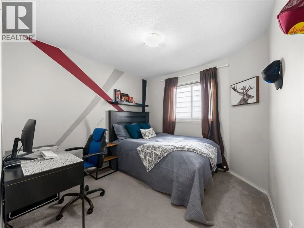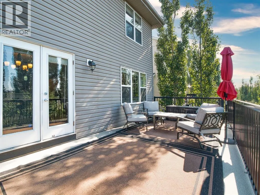 +"PublicRemarks": "A well-maintained 4-bedroom (all on the same level) Family home with a fully developed walk-out basement, set on a quiet street in the Creekside area of Evanston. Families will appreciate being a very short walk to Kenneth D. Taylor School, with three additional schools located within the community, making daily routines easy and convenient. The main floor features a practical layout with a front office and refinished hardwood floors that continue up the staircase and throughout the upper level. The kitchen offers quartz counters, new tile backsplash, stainless steel appliances and a walk-through pantry connecting to the laundry and garage entry, while the living room centers around an upgraded gas fireplace and the dining area opens to an oversized deck with a gas line. Upgraded Duradek (a maintenance free product that doesn’t require staining) was installed in October 2025. Upstairs, the primary suite is generous in size and features a walk-in closet and an updated ensuite with dual sinks, a soaker tub and a separate shower. There is another full bathroom and 3 other good-sized bedrooms, including the spacious 4th bedroom that could be used as a bonus room or home office. The walk-out basement provides a comfortable media and entertainment space with built-in TV, speakers, gas fireplace and wet bar, leading to a covered patio with privacy shades and a landscaped yard with grass and trees. The basement also offers loads of storage space and roughed-in plumbing for a future bathroom. Recent updates include a new roof (2024), Air Conditioning (2022) and hot water tank (2024). Located steps from parks, and a short walk on pathways along the creek through the ravine to nearby amenities at Creekside Shopping Centre. With quick access to Stoney Trail, Shaganappi and major routes, this home combines space, function and family convenience. (id:62650)"