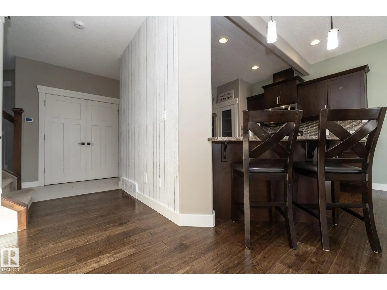+"PublicRemarks": "UPGRADES UPGRADES UPGRADES! Step inside to LUXURY VINYL PLANK flooring and PLUSH CARPET throughout the home! The chef inspired kitchen offers BUILT-IN WALL OVEN and GAS STOVETOP! EXTENDED UPGRADED CABINETRY w/ ambient under-lighting is sure to wow your guests. The main floor offers 9' CEILINGS W/ 8' DOORS and a cozy DEN/BEDROOM, perfect for an office or playroom! The magnificent OPEN TO BELOW living room features FLOOR TO CEILING FEATURE WALL! Upstairs, you will be welcomed by a BONUS ROOM, 3 bedrooms and 2 bathrooms. The primary suite w/ENSUITE BATHROOM features DOUBLE SINKS, and a WIC leading to UPSTAIRS LAUNDRY. Enjoy comfort using your ECOBEE SMART THERMOSTAT connected to HIGH EFFICIENCY FURNACE right from your phone! This beautiful home on a WALKOUT LOT w/UPPER DECK is perfect to enjoy the area with no rear neighbours! Enjoy extra storage room with the OVERSIZED DOUBLE GARAGE w/ GEM LIGHTING. WHIRLPOOL APPLIANCE PACKAGE INCLUDED! WINDOW COVERINGS INCLUDED! (id:62783)"