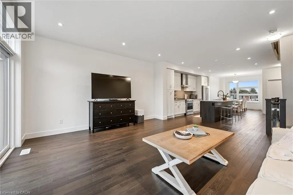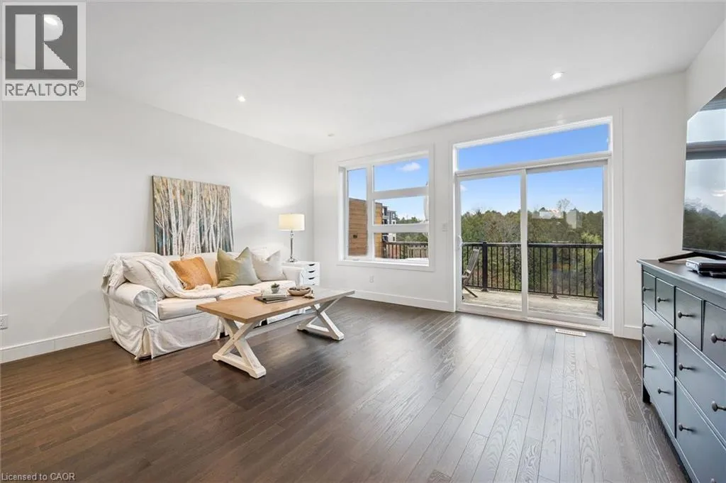 +"PublicRemarks": "Start the year off right with a flexible closing date and reasonable maintenance fees, in this gorgeous unit with all of the views you've been waiting for! A spacious 3 Storey townhome in Guelph's highly sought-after south end combines modern comfort with the true beauty of nature. Offering well over 2200 square feet of living space, this home includes 3 bedrooms with the potential for more, 3 bathrooms and an incredible location in the complex with unobstructed views form the front and back of the unit. As you enter, discover versatility on this completely finished floor with large back windows and access to the garage. Ascending the gorgeous wood and glass staircase, you will find an open-concept space including a large kitchen island, beautiful dining area and spacious living room, all carpet free. Large windows, sliding doors to a balcony, as well as a two piece bathroom create an ideal floor for entertaining or relaxing. The third storey includes a primary suite with a walk-in closet, private ensuite, and additional private balcony to enjoy. You will find two more bedrooms, a four piece bathroom and upper laundry convenience on this level. The walk-out basement is the perfect space to create a fourth bedroom, additional living room, or private home office. The possibilities are endless. Each level includes a stunning natural backdrop of mature trees and green space. The backyard sunsets here are a must see! This is a rare find that offers true privacy and a lasting connection to nature while being surrounded by an array of amenities. Easy access to 401, U of G bus route, GO Stops, trails, fabulous schools and a wonderful neighbourhood. (id:62650)"