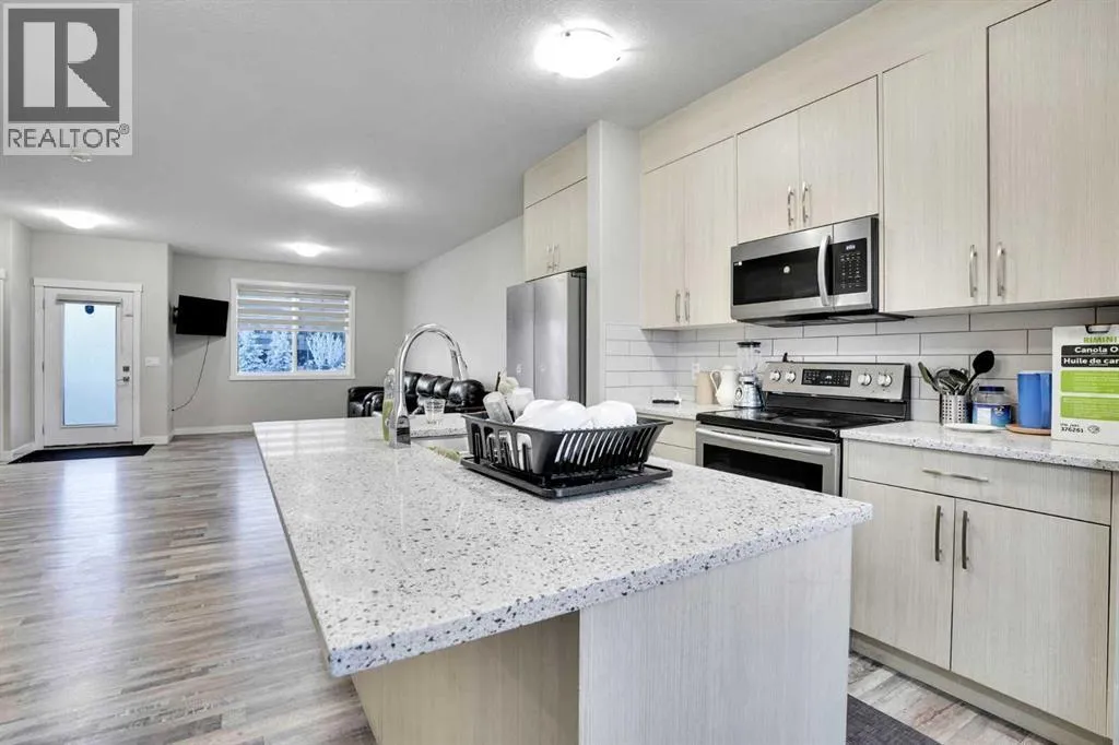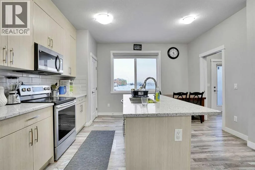 +"PublicRemarks": "*** OPEN HOUSE SATURDAY JANUARY 10TH: 1:00 PM 4:00 PM *** Step into a world where sophistication seamlessly meets everyday comfort in this remarkable contemporary townhome. Boasting over 1,634 sqft spread across three impeccably designed levels, this residence features three spacious bedrooms and two and a half bathrooms, offering an environment of refined, turn-key living. The moment you enter the welcoming foyer, you are greeted by a beautiful main floor living room, bathed in an abundance of natural light. This ground floor ensures ultimate functionality, featuring a generously sized coat closet, utility room, and a practical mudroom that provides direct, access to your convenient double attached garage. Upstairs, discover the heart of the home - a bright and open haven for both daily life and entertaining. The family room provides an idyllic setting and offers a bright and inviting ambience. The stunning, modern kitchen showcases sleek countertops, ample cabinetry, and is anchored by a large center island that provides comfortable seating for four. This culinary space flows effortlessly into the generously sized dining room. Extending your living space outdoors is a sunny balcony located just off the dining area—the perfect spot for enjoying your morning coffee or hosting summer evening gatherings. For the convenience of your guests, a stylish two-piece powder room completes this impressive main entertaining level. The private upper level is dedicated to peaceful relaxation. The flooring transitions to plush carpeting, creating a tranquil environment for the three spacious bedrooms. The primary suite is a true retreat, featuring a private three-piece ensuite and a dedicated walk-in closet. The two additional great-sized bedrooms, each with ample closet space, share a well-appointed four-piece main bathroom, plus an essential addition to this floor is the conveniently located upper-level laundry room. Beyond the elegant interior, this home offers superb comfort a nd convenience, including central air conditioning, parking for 4, plus a storage room within the garage. Designed for those who value style, comfort, and unparalleled convenience, this home checks all the boxes. Set in Belvedere—one of Calgary’s most exciting and fast-growing neighborhoods, you are placed moments from everything you need. Whether you’re a first-time buyer, growing family, or investor, this property is a must-see so book your showing today! (id:62650)"