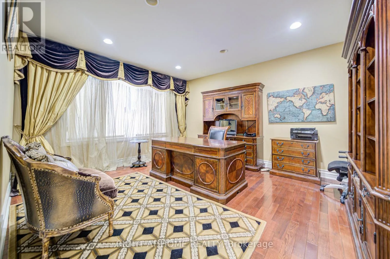 +"PublicRemarks": "Welcome to this exquisite custom-built 4+2 Bedrm 6 Bathrm home, perfectly situated in the heart of Lawrence Park. Soaring 10ft ceilings, sleek pot lights, and White Oak hardwood flrs throughout. Open Concept living and dining rm creates a spacious environment ideal for entertaining with natural light through the floor to ceiling windows. Living rm boasts a gas fireplace. Dining rm features a wine cellar. Main flr office, complete with smart frosting film on glass offers option for privacy. Grand foyer showcases a walk-in closet with sliding doors, powder rm impresses with designer sink and heated floors. Mudroom off of side entrance with custom closets and bench. Gourmet kitchen is a chefs dream, with built-in Miele appliances, refrigerator, freezer, 6-burner gas range, coffee system, transitional speed oven, and dishwasher. Custom-built center island adorned with luxurious quartzite countertops. Open-concept family room, featuring another fireplace with walk out to deck. Natural light floods the contemporary staircase with skylights overhead. Primary suite offers a serene retreat, complete with a 6-piece ensuite, walk-in closet, gas fireplace, bar with beverage cooler, and speaker system, all overlooking the tranquil backyard. 2nd Bedroom with 4pc ensuite features custom built in closets. 4pc ensuite has caesar stone counter top, tub and heated floors. 3rd & 4th Bedrms offer south facing large windows with shared 3pc ensuite with Custom Vanity w/ Caesar stone Countertop, heated flrs, shower. Mezzanine office with gas fireplace. Lower level offers an expansive rec room, two additional bedrooms (ideal for a gym), 2 3pc bathrms, laundry, and a home theatre. Federal Elevator system. iPort Home Automation System. Hot Tub & Pool. Heated Driveway & Stairs, Front Porch, Rear Deck & Rear Stairs. Camera Security System. Double Car Garage. Sprinkler System. Concrete Deck w/Glass Railing (id:62650)"
