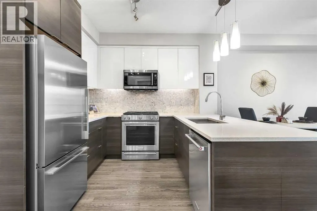 +"PublicRemarks": "Discover the perfect blend of style and convenience in the highly sought-after SW community of Currie Barracks. This stunning 700+ sq. ft. residence in a prestigious complex offers a sophisticated urban lifestyle, perfect for first-time buyers and savvy investors alike. The heart of this home is a bright, open-concept living area featuring durable laminate flooring and a seamless flow. Natural light pours in through large sliding glass doors that lead to your spacious private balcony - an ideal spot for morning coffee or evening relaxation. Prepare to be impressed by the sleek, modern kitchen featuring contemporary cabinetry, stylish tile backsplash, premium stainless-steel appliances, elegant quartz countertops and a large kitchen island. There are two generous bedrooms: Including a primary suite complete with a spacious walk-in closet. A refined 5-piece bathroom and dedicated laundry area provide convenience for all occupants. Enjoy the perks of a well-maintained complex that include access to a car wash bay, secure bicycle storage, and ample visitor parking for your guests. Located in one of Calgary’s most vibrant neighborhoods, you are minutes away from the trendy shops and dining of Marda Loop. A quick drive to Downtown Calgary and easy access to public transit. Walking distance to Mount Royal University and top-rated local schools. Experience the best of SW Calgary living. Schedule your private viewing today! (id:62650)"
