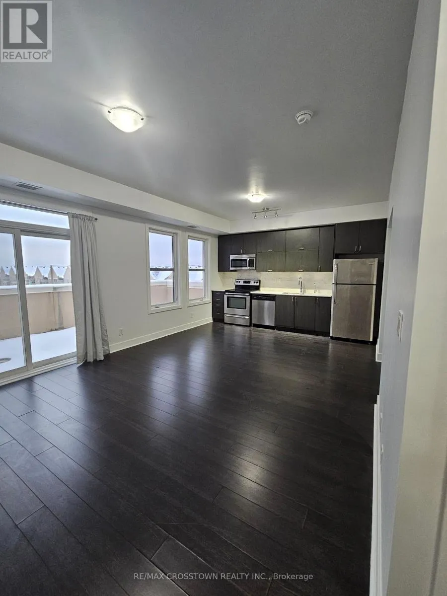 +"PublicRemarks": "Welcome to this highly sought-after Garden Court condominium in the prestigious Cathedraltown community of Markham. This bright and spacious penthouse offers over 850 square feet of thoughtfully designed living space, featuring two generously sized bedrooms, each with extra-large closets. The unit boasts a beautifully upgraded modern kitchen with stainless steel appliances and granite countertops, along with a stylishly renovated bathroom. Quality laminate flooring throughout and soaring 9-foot ceilings create an open, airy ambiance. The convenience of ensuite laundry adds everyday comfort. Step out onto the impressive private terrace, offering over 200 square feet of outdoor living space with breathtaking, unobstructed views-ideal for relaxing or entertaining. The unit also includes one underground parking spot and a large storage locker. Residents enjoy premium building amenities including concierge security, an on-site car wash, a party/meeting room, and a community BBQ area. Ideally located just minutes from Highways 404 and 407, and close to parks, shopping, and all essential amenities. (id:62650)"