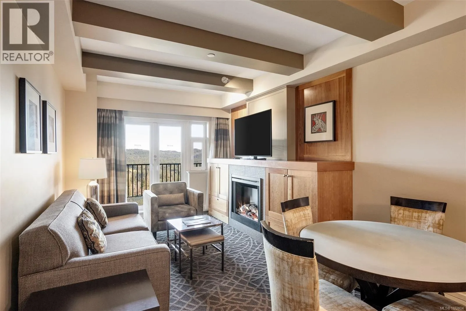 +"PublicRemarks": "Incredible opportunity to own in Bear Mountain Resort Community! Fractional ownership in the ClubHouse at the Westin Golf Resort & Spa offers two adjoining rooms, providing guest privacy or spacious family accommodations. The kitchen flows into an open living area with a cozy fireplace, leading to a stunning patio with breathtaking mountain and golf course views. The primary suite boasts a desk area, balcony access, a walk-through double closet, and a luxurious 4-piece ensuite with a soaker tub. The additional lock-off suite sleeps four, featuring a wet bar and a 4-piece ensuite. Enjoy world-class amenities at your doorstep—two Championship Nicklaus-designed golf courses, Tennis Centre, an outdoor pool/hot tub at North Langford Recreation Centre, or hike/bike scenic trails and Mt. Finlayson. Your mountain retreat is just 20 minutes from downtown Victoria! (id:62650)"