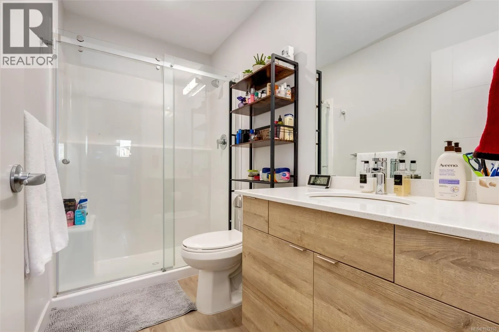 Welcome to this stunning home in Lakeview Terrace! This Built Green Platinum certified 2-bedroom, 2-bathroom residence offers a fantastic vantage point with sweeping mountain views over North Nanaimo. Completed in 2022, this modern home prioritizes sustainability with roof-installed solar panels, and a heat recovery ventilation system. The bright interior boasts a contemporary design featuring up-to-ceiling cabinetry, quartz countertops, and