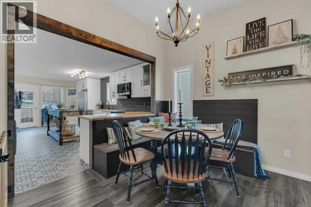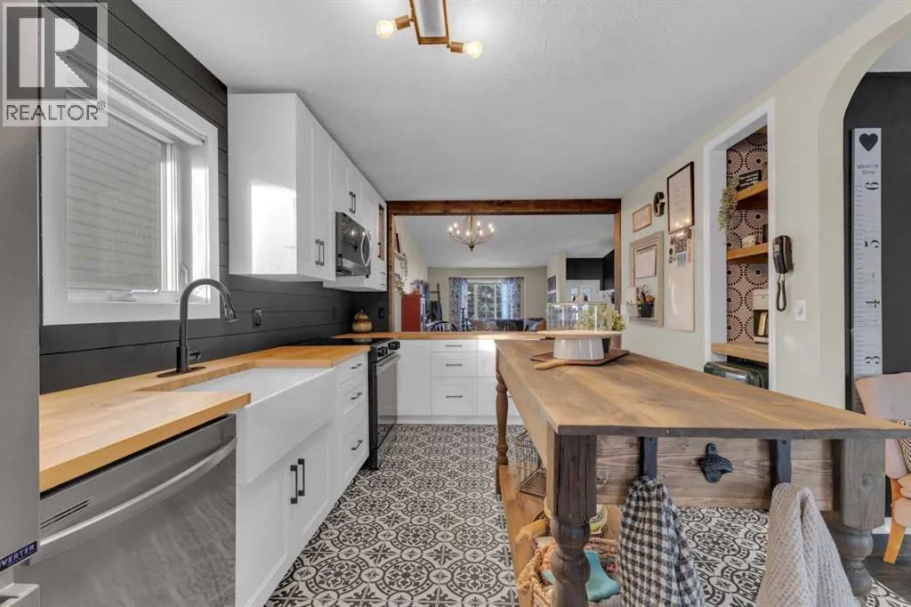 +"PublicRemarks": "Bungalow on the East side of Red Deer with a new kitchen and a very private South facing backyard might be just what you have been searching for! The kitchen has been opened up and has new cabinetry, counter tops, flooring, stainless steel appliances, large movable island, a farmhouse sink, & the perfect little coffee nook! There is a pantry next to the fridge as well as in the sitting room adjacent to the kitchen. Sit here with a cup of your favorite beverage and enjoy the sights of all the trees in this magnificent backyard. The owners created a built-in bench to accompany the dining table as well. There are 2 bedrooms up + 2 down with 3 full bathrooms. The primary bedroom is large with windows that let so much natural light in. The main floor laundry room location is very functional, right off the primary and has been updated, complete with a countertop to fold clothes. There is vinyl plank flooring throughout the main living areas with the exception of the primary bedroom (carpet) and kitchen (vinyl). There is a two-tiered deck to enjoy all the sunny days that you'll get in this South facing yard - with an abundance of privacy from mature trees! The shed is newer and a great size to store things or create a workshop. Downstairs has plenty of space for a family room, where you can cozy up to the gas fireplace (mantle has been redone), have a home gym, hobby space, or kids playroom at the back. There are so many options with space like this! Shingles were done approximately 10 years ago. The attached garage is insulated and has an abundance of built-in storage shelves, a workbench, & a side door to access the yard. This property has a very homey feeling and offers a walkable location to the Deer Park amenities, Holy Family School, Collicut Centre, Hunting Hills High School, & Ecole Secondaire Notre Dame High School. (id:64429)"