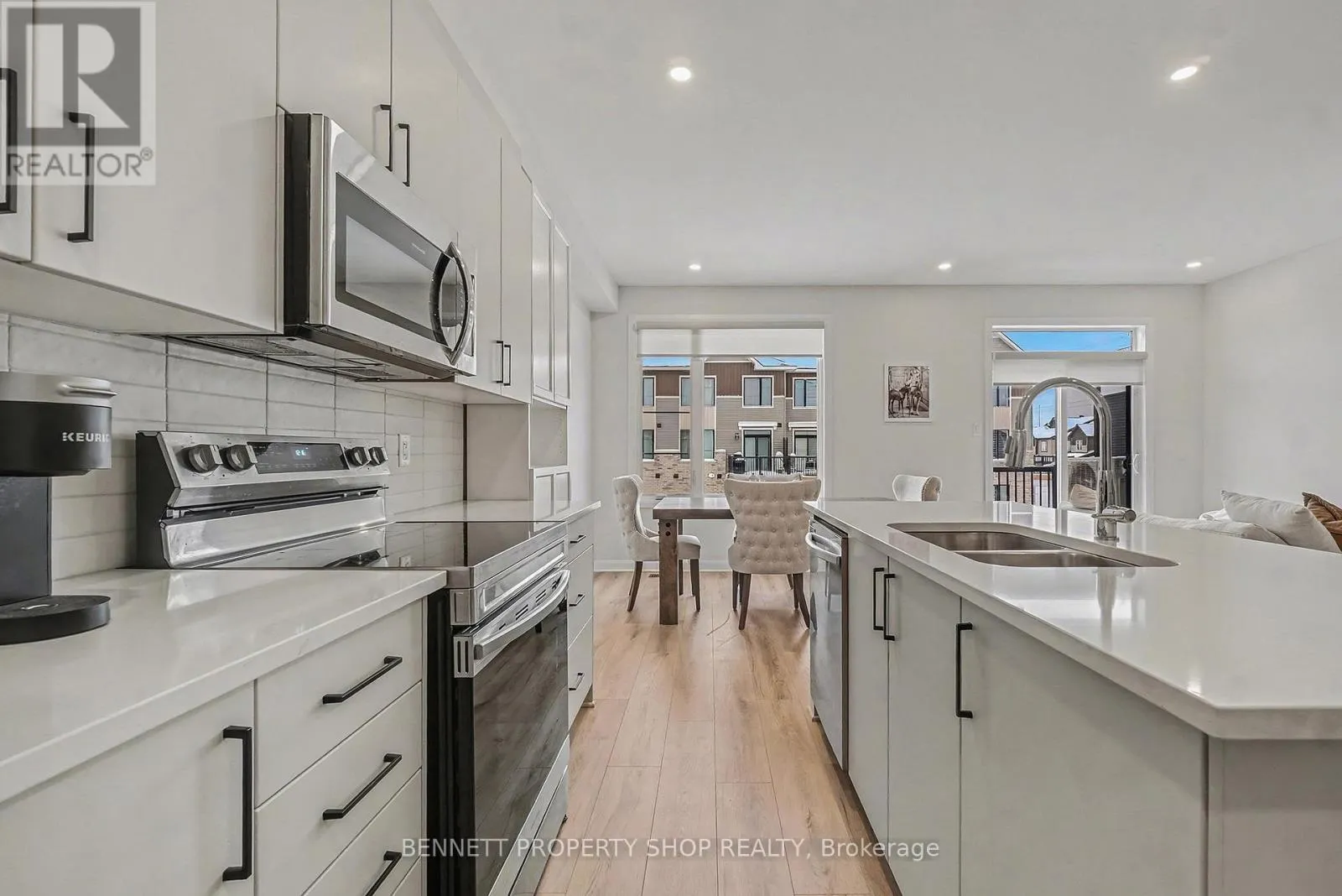 +"PublicRemarks": "Discover this recently built modern three-story townhome, ideally situated just steps from all essential amenities, including a vibrant array of shops, restaurants, and everyday conveniences for effortless urban living. Embrace the benefits of its modernist design, with clean lines, high-end finishes, and efficient use of space that promotes a seamless lifestyle-plus, its prime location ensures you're never far from dining options, retail therapy, and community hubs, making it an ideal choice for those seeking convenience without compromise.This 2025 build boasts a wide-open floor plan on the main level, featuring a spacious kitchen with a large island, sleek stainless steel appliances, and updated lighting that accentuates its contemporary open concept layout-perfect for entertaining guests or enjoying family gatherings. The second-floor balcony floods the space with natural light throughout the day, enhancing the airy, modernist vibe. Upstairs, the full bathroom showcases premium quartz countertops and a stylish tiled shower, blending luxury with functionality. With 6 years remaining on the Tarion warranty, this turnkey home requires nothing more than your personal touch-just move in and start living. Some photos are digitally enhanced. (id:62650)"