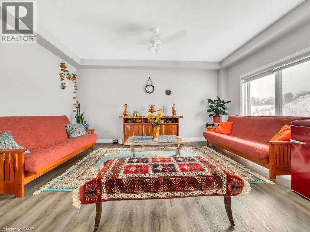 +"PublicRemarks": "Welcome to Lackner Ridge Condominiums: 1000 Lackner Blvd, Unit 303, Kitchener. This beautifully designed 1 BEDROOM + DEN condo unit provides a peaceful and private setting with serene views, away from the noise of busy streets. Enjoy your morning coffee or unwind in the evening on your private balcony, surrounded by calm and greenery. Inside, you'll find a bright and functional open-concept layout. The spacious living area flows effortlessly into the modern kitchen, where large windows fill the space with natural light, creating an inviting and airy atmosphere. The kitchen features stainless steel appliances, sleek cabinetry, and ample counter space-perfect for everyday cooking and entertaining. A large den offers incredible versatility, making it ideal for a home office, guest space, or additional storage. The in-suite laundry adds another layer of convenience to your daily routine. The bedroom is generously sized and features a wall of windows that brighten the space, a walk-in closet with excellent storage, and direct access to a full 4-piece bathroom. Additional highlights include: Surface parking for your convenience Bright, modern finishes throughout A quiet, well-maintained building The location is unbeatable, steps away from a grocery store, pharmacy, and everyday essentials, with Stanley Park Mall just minutes away for expanded shopping and dining. Nature lovers will appreciate the nearby Grand River Trail, offering scenic walking, jogging, and biking paths along the water. This condo is deal for young professionals, couples, or anyone seeking low-maintenance living in a prime location. Book your showing today! (id:62650)"