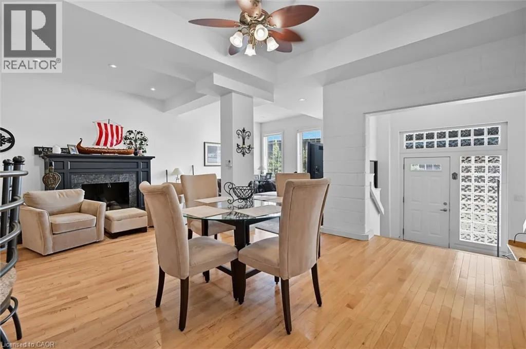 +"PublicRemarks": "Welcome to the largest unit at Carnegie Lofts, where timeless heritage character meets modern design. This one-of-a-kind 1-bedroom loft (easily adaptable into two bedrooms) spans two storeys plus a full basement and was crafted by the highly respected local builder Phelps Homes. As the original show home of Carnegie Lofts, this residence truly stands apart. Enter through your private street-level entrance into a generous 8' x 7' foyer-a feature unique to this unit. The open-concept main floor boasts soaring 10-foot ceilings, gleaming hardwood floors, and a sleek contemporary kitchen with breakfast bar and pendant lighting, perfectly positioned to overlook the living area-ideal for both everyday living and entertaining. A convenient 2-piece powder room completes the space, while large windows fill the home with natural light, showcasing its warmth and character. Upstairs, the oversized loft bedroom offers a stunning private retreat. The impressive 10' x 8' walk-in closet, originally the building's elevator shaft, still features the authentic antique wood elevator doors, adding a remarkable historical touch. The upper level also includes a spacious 4-piece ensuite with soaker tub and separate shower, along with a discreetly tucked-away laundry area for added convenience. Need more space? The full basement provides ample storage and offers excellent potential to be finished into a recreation room or additional bedrooms. Residents enjoy access to a beautifully landscaped courtyard with BBQs and seating-perfect for summer entertaining. Located just steps from downtown Grimsby's shops, restaurants, and parks, and only a short distance to the lake, this home also offers quick QEW access, making commuting effortless. This is a rare opportunity to own a truly unique piece of Grimsby's history in the largest unit available at Carnegie Lofts. Don't miss this exceptional home. (id:62650)"