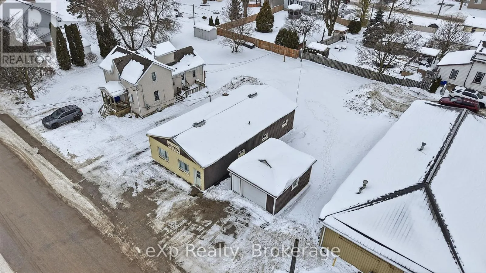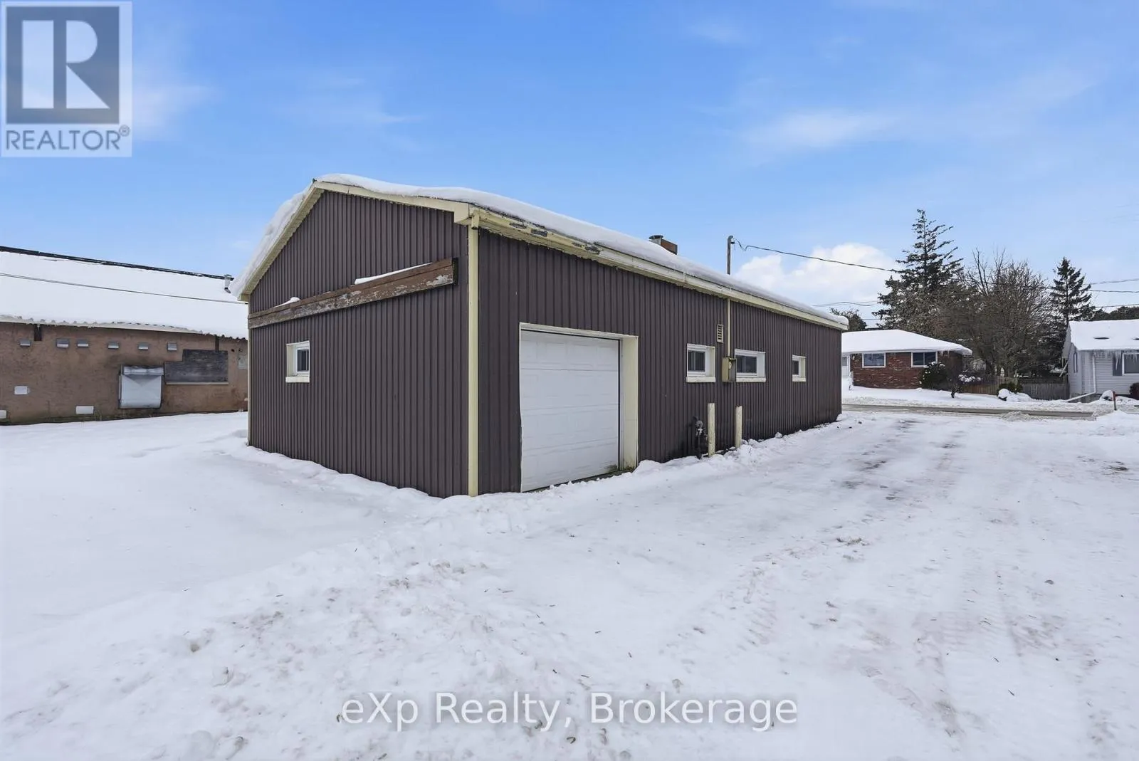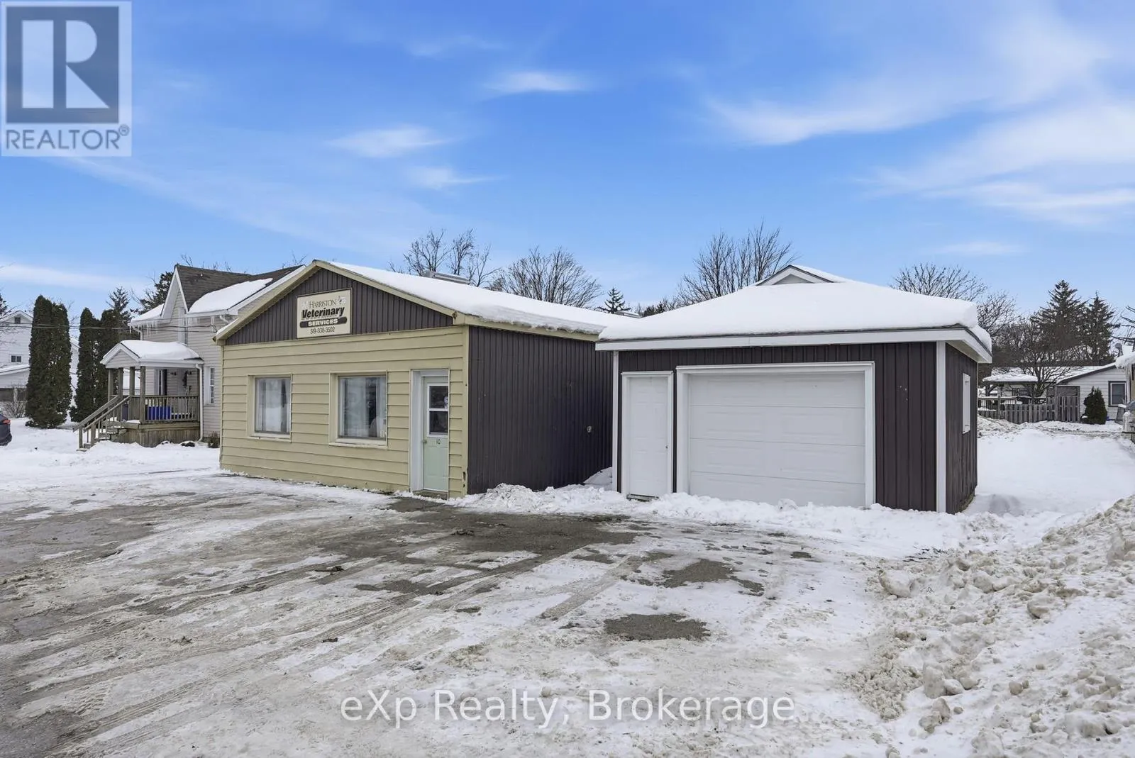 Well-located commercial building in downtown Harriston offering excellent flexibility and future potential. Formerly operated as a veterinary clinic, this vacant property features a 1,326 sq ft main building constructed of solid cement block on a concrete pad, plus a detached approximately 400 sq ft garage. Built in 1961, the building offers durable, straightforward construction with forced-air natural gas heating. Flat