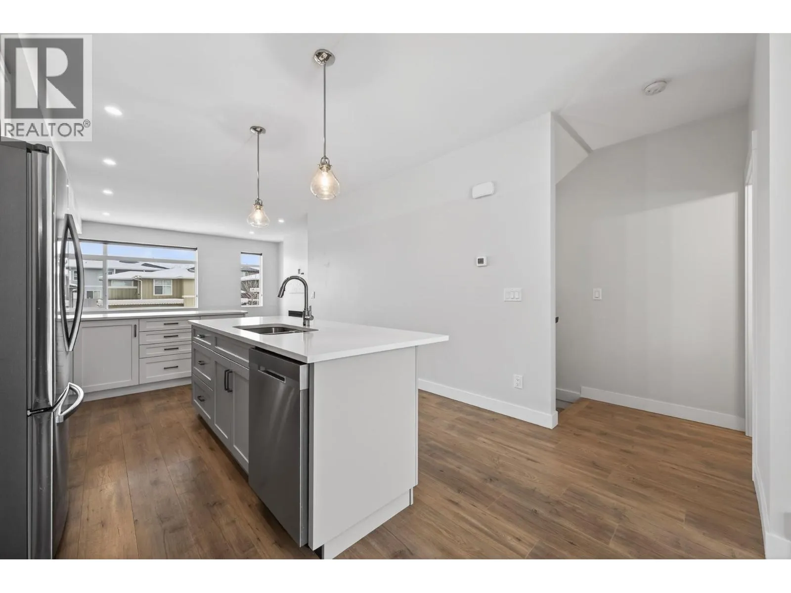 Lovely Juniper Ridge three level townhome with 4 bedrooms, beautiful bright open living space and an oversized single garage. Enter this nearly new townhome and you will find a good sized main entry. This level consists of a bedroom with siliding glass doors to a patio and could be a home office, family room or additional bedroom. There is a