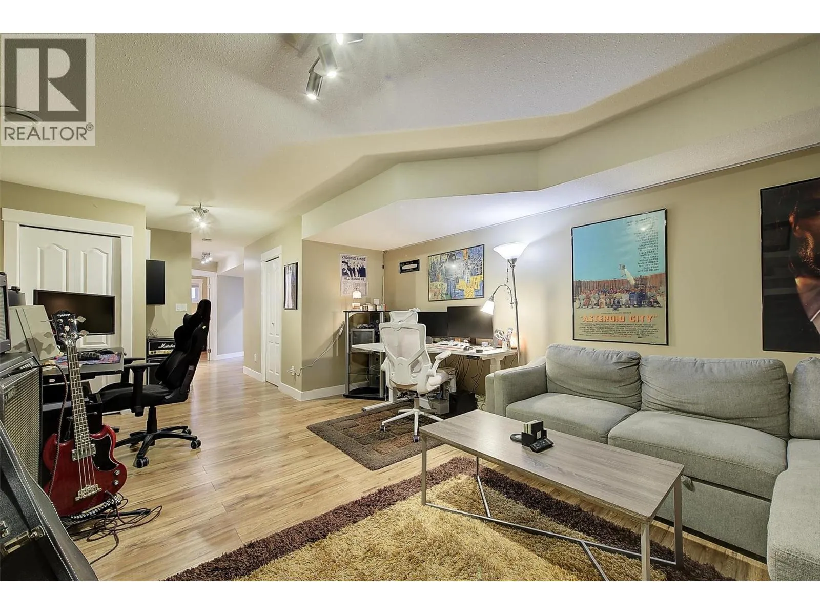 +"PublicRemarks": "Set on a quiet private lane in Lakeview Heights, this beautifully designed walkout rancher captures sweeping lake, valley, and mountain views while offering exceptional space and versatility. Inside, the main level is filled with natural light, featuring high ceilings, warm hardwood floors, and large windows framing the lake at every turn. The open living and dining areas are anchored by a three-sided gas fireplace. The kitchen blends function and elegance with rich wood cabinetry, granite counters and backsplash, a generous island with seating, gas cooktop, premium appliances, and a built-in coffee machine. Step outside to the lakeview deck, perfectly suited for morning coffee or sunset dining. The main-level primary suite is a serene retreat with bay windows overlooking the water, a walk-in closet with custom built-ins, and a spa-inspired ensuite featuring heated floors, steam shower, jetted tub, and dual vanities. A dedicated office, powder room, and well-appointed laundry room complete the main floor. The walkout lower level offers remarkable flexibility with a rec room, wet bar, family room, bonus games room, home gym, workshop, wine cellar, and two additional bedrooms. Outdoors, the fully fenced backyard features covered & open patios and a hot tub—designed for relaxed Okanagan living. A double garage with extensive storage & a rare cargo elevator adds functionality to the home. This home is being sold turnkey with the exception of artwork- its move in ready! (id:62650)"