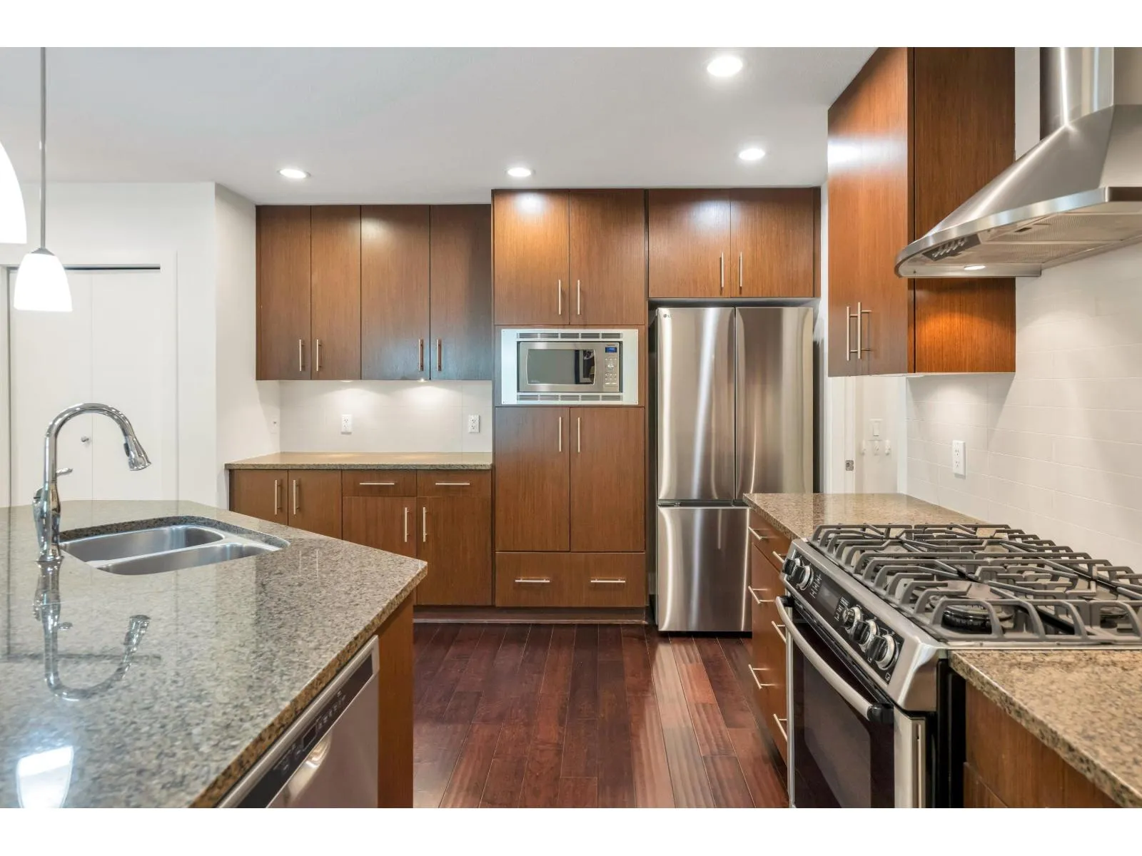 +"PublicRemarks": "End unit in the desirable Laredo community of West Cloverdale. This 1,711 sq. ft. Amarillo plan offers 4 bedrooms, 3 full bathrooms, and a rare fully fenced backyard off the main-level walk-out deck. A side-by-side double car garage includes a Level 2 EV outlet. Recent updates feature fresh paint and new carpeting throughout. The home boasts 9-foot ceilings, laminate flooring, granite countertops, stainless steel appliances, and oversized south-facing windows that flood the space with natural light. Located on a quiet inner-complex lot with no through traffic, offering peace, privacy, and added safety. Bonus large under-deck storage area and a well-managed strata with a strong contingency fund complete this move-in-ready home! (id:62650)"