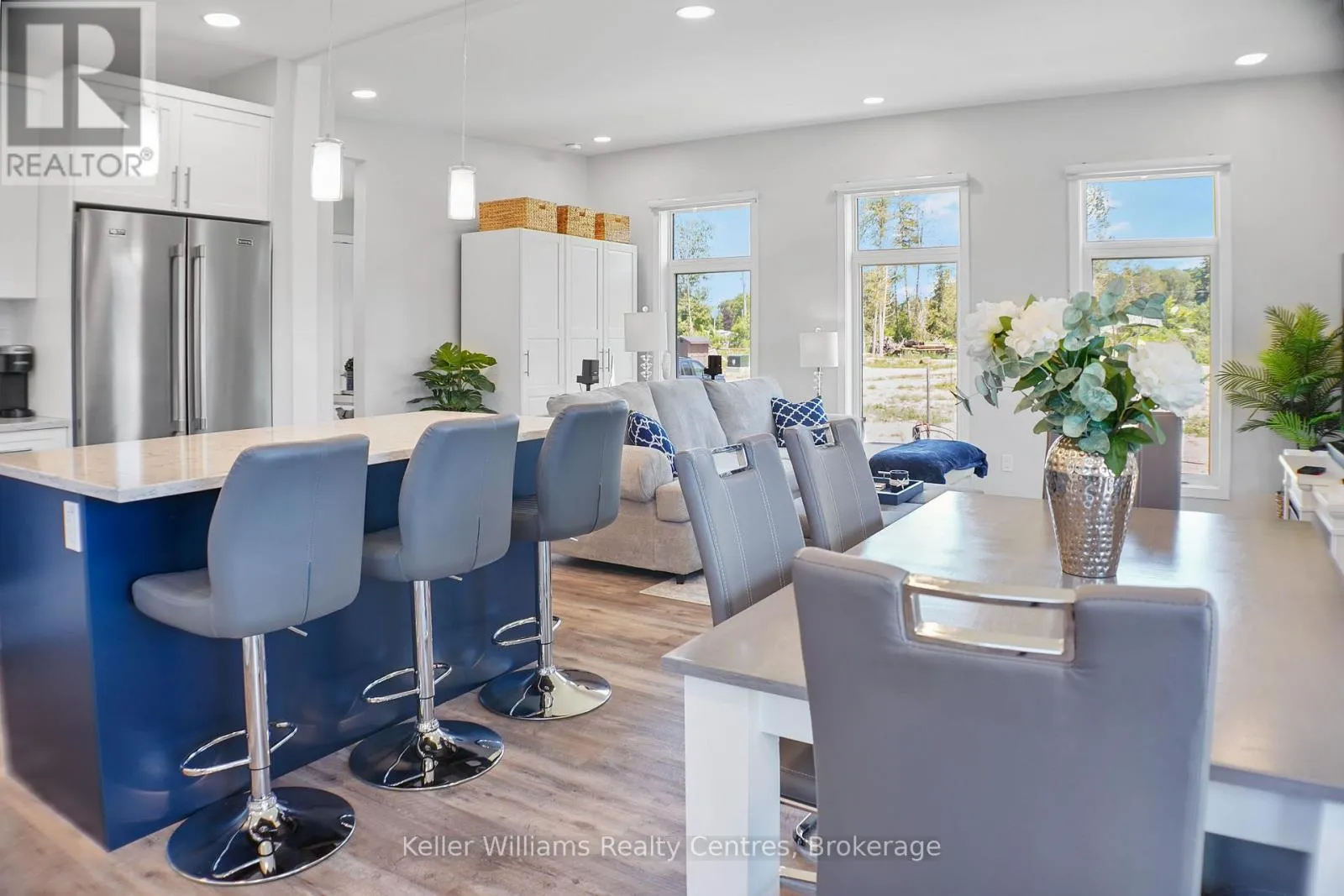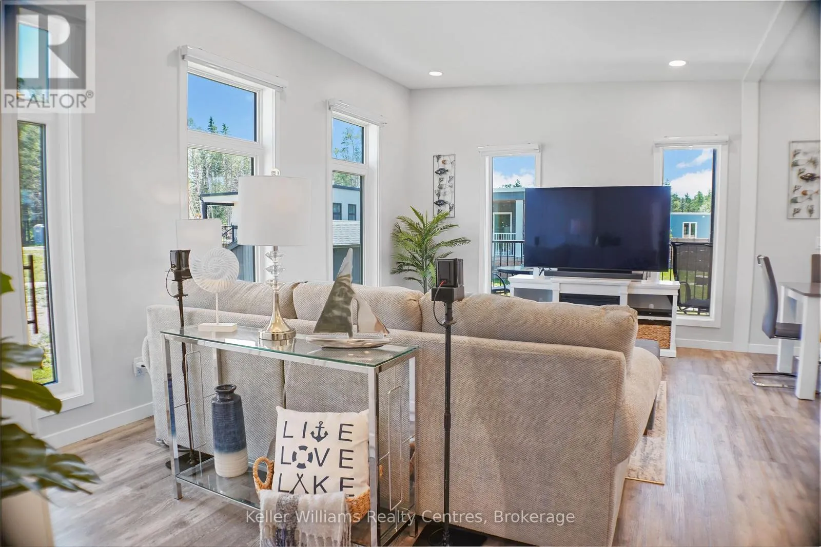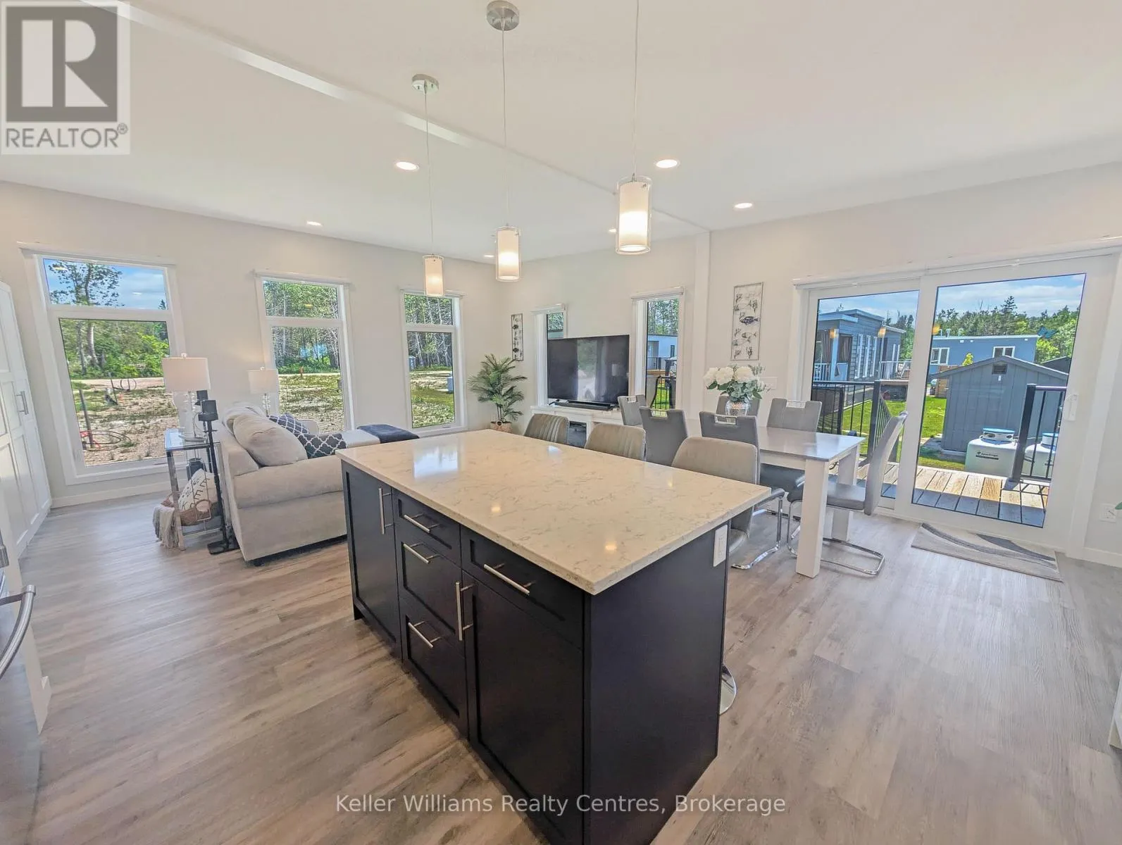 Nestled in the heart of charming Port Elgin, this stunning 2023 Ashfield model, built by Conquest, is a rare find at Port Elgin Estates. The all dry wall, open concept design welcomes you with floor to ceiling windows, flooding the living, dining, and kitchen area’s with natural light, while vaulted ceilings create a grand, airy ambiance. Sleek vinyl flooring and