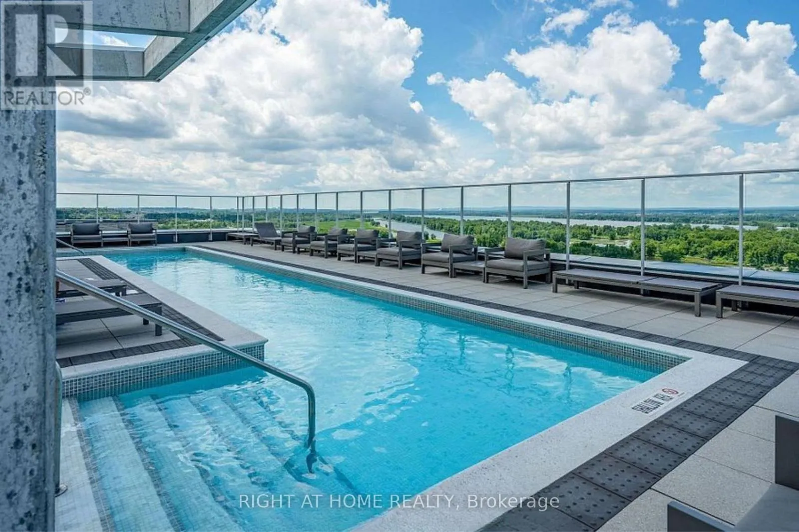 +"PublicRemarks": "Lifestyle is what this condo is all about! Step into modern elegance with this stunning condo featuring a well thought open concept layout. Gorgeous large foyer with ceramic tiles, leading to a bright living space with expansive windows that flood the room with natural light with views of the Ottawa river and Gatineau Hills. Spacious and well laid out 2-bedroom, 2 bath condo in the coveted Petrie's Landing area with River view. Over 1180 square feet of living space, with 2 balconies (extra 287 s.f.) one with views of the river and the other overlooking Orleans (North- East-South views). The condo comes with 1 underground parking space and one storage locker. No carpets in the unit, all engineered hardwood or tiles. Bright unit with living-dining-kitchen open plan, bedrooms separated by the living space each have their own full bathroom. The primary bedroom offers a walk-through closet and luxury spa like bathroom with double vanity, separate tub and double shower; the 2nd bathroom is a 3-piece bathroom. Good sized vestibule at the entrance, in unit laundry and storage area. Kitchen has a breakfast island, generous counter space counters (Quartz) and a window. Linen closet near the dining area. Quality automatic blinds throughout, stainless kitchen appliances. You will love the roof top amenities, including lap pool & spa with gorgeous views of Petrie Island, the adjacent party room (looks like a luxury lounge!) and exercise room. Other amenities include bicycle storage, kayak, paddleboard storage& indoor car wash. Also walking distance to the LRT Park & Ride at Trim Rd and soon to be LRT stop on Line 1. Immediate Occupancy. (id:62650)"
