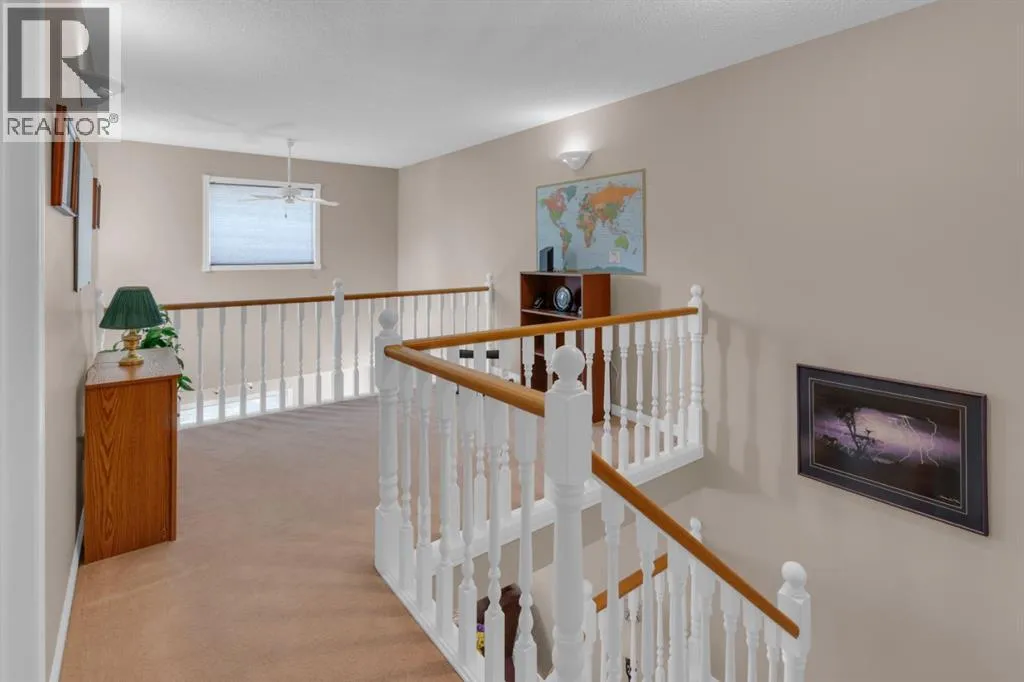 +"PublicRemarks": "OPEN HOUSE SUNDAY JANUARY 11, 2:00-4:00 P.M. Welcome to this beautifully maintained two-bedroom condo townhome nestled on a quiet green space with a coveted double attached, insulated garage. As you approach from the front, you'll appreciate the clean curb appeal and the convenience of direct garage access into your home. Step through the front entry and into a bright, open-concept main level where upgraded carpet and underlay flow throughout, adding comfort and quality. The spacious living room is truly impressive with soaring 20-foot vaulted ceilings, a cozy gas fireplace, and large windows that flood the space with natural light. The kitchen has been thoughtfully updated with new cabinet doors and drawers, a convenient pantry for extra storage, and plenty of counter space, while the adjacent dining area overlooks the private green space beyond. The main-floor laundry and two-piece bathroom provide excellent convenience. Step outside through the patio doors onto your extended and permitted 12' x 9' back deck, complete with a gas line for your BBQ—an ideal spot for entertaining or unwinding while enjoying the serene, treed backdrop.Upstairs, the home opens to a bright loft area with white spindle railings and warm wood accents—a perfect reading nook or secondary workspace. Both generously sized bedrooms are located on this level, each with its own full en suite bathroom. The primary bedroom features beautiful vaulted ceilings and a luxurious five-piece en suite with double vanity, separate shower, and soaking tub. The second bedroom offers a well-appointed four-piece en suite. Hunter Douglas blinds dress most windows throughout the home, and nearly all windows have been replaced for improved efficiency (except the rear upstairs). Central air conditioning keeps you comfortable year-round. Below, the unfinished basement offers a blank canvas ready for your vision—rec room, bedroom, bathroom, and plenty of room for storage. The well-maintained features new asphalt shingles, and the double attached, insulated garage includes a hose bib for added utility. As an extra, a water softener adds to the home's functionality. This turnkey, move-in ready home with its prime green-space location and thoughtful updates truly needs to be seen to be fully appreciated. Be sure to check out the virtual tour! (id:62650)"