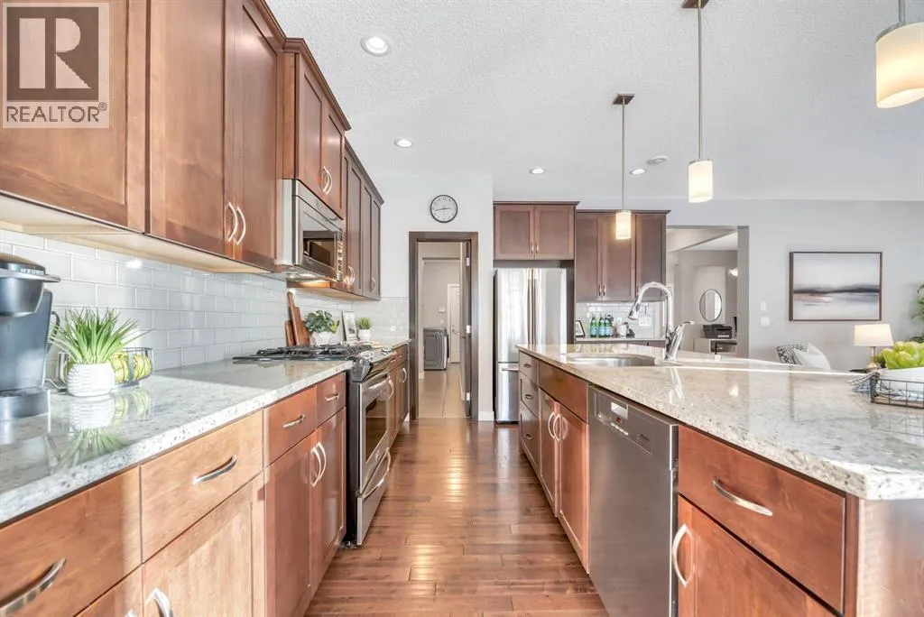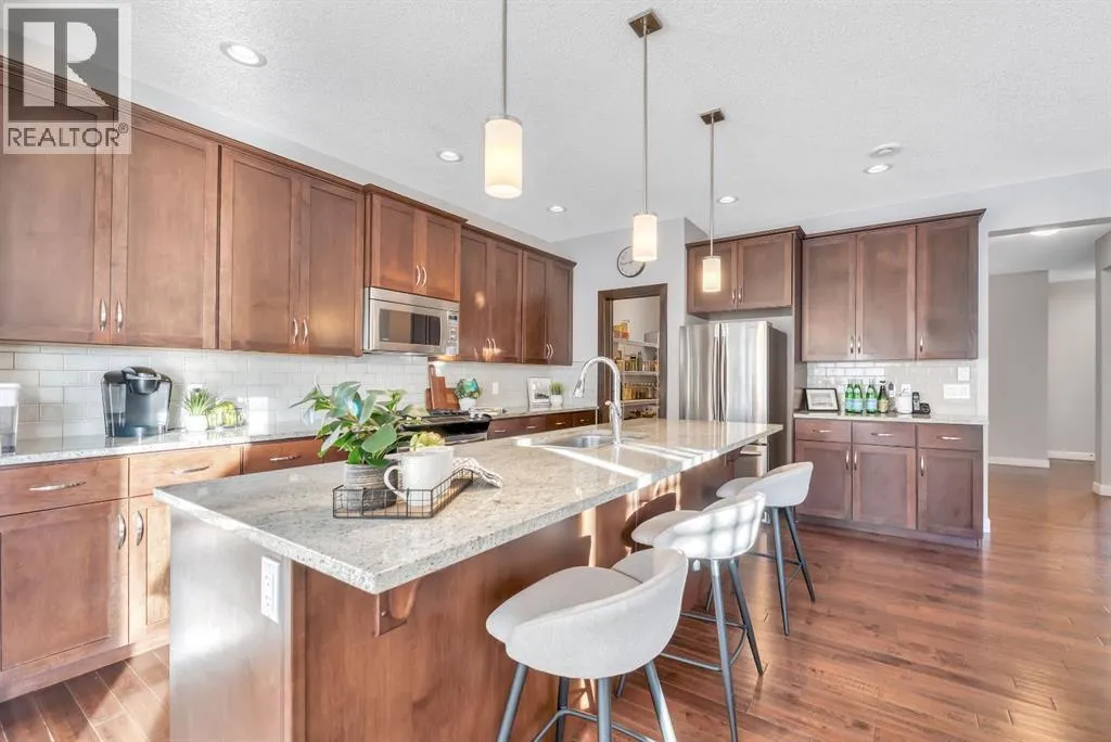 +"PublicRemarks": "AMAZING LOCATION & AN IMMACULATE FAMILY HOME!Welcome to this beautifully maintained 2,160 sq. ft. two-storey home with a sunny west-facing backyard, perfectly situated in the sought-after community of Evergreen. Enjoy the convenience of walking distance to top-rated schools, with Fish Creek Park, shopping, everyday amenities, and quick Stoney Trail access all close by.The bright and inviting main floor features 9’ ceilings, a front den ideal for a home office, and a warm, open-concept layout designed for everyday living and entertaining. The spacious kitchen offers an abundance of cabinetry, stunning granite countertops, subway tile backsplash, gas stove, and a massive walk-through pantry, flowing seamlessly into the dining and living areas. The cozy gas fireplace anchors the living room, while air conditioning keeps the home comfortable year-round. A main-floor laundry room is conveniently located at the back entrance.Upstairs, the thoughtful layout continues with a front bonus room—perfect for movie or game nights—along with two generous bedrooms, a 4-piece bathroom with excellent storage, and a private primary retreat tucked at the back of the home. The primary bedroom features a spa-inspired ensuite with a soaker tub, glass-enclosed shower, and a large walk-in closet.Outside, enjoy a large deck and low-maintenance, fully fenced backyard, ideal for relaxing or entertaining. Additional highlights include hardwood, tile, and carpet flooring throughout and an unspoiled basement ready for your personal touch. A fantastic home in an unbeatable location—move-in ready and waiting for its next owners. (id:62650)"