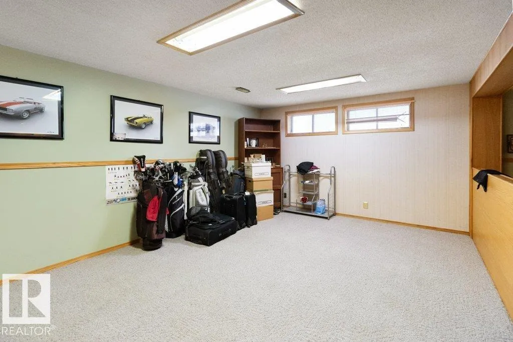 +"PublicRemarks": "This elegant bungalow has a total of 2474 ft2 living space. The main floor has 1.5 baths & 3 bedrooms, a large primary w/ensuite & WIC. The spacious kitchen has a beverage fridge, stainless toe-kicks and premium appliances with ample room for a Bistro table & several to work together. Open concept living and dining area. Crown moulding adds charm to this level. The basement has a large rec room with gas fireplace & cork flooring making this a cozy gathering spot. The 4th bedroom with a homework zone leads to a WIC that boasts a make-up table, shoe rack & jewelry cabinet. The washroom has mood lights and shower system. The large fenced yard is perfect for badminton or soccer and enjoying a smokie at the firepit. Dog run/patio w/artificial turf completes the yard. The oversized insulated garage offers a stainless work bench w/ cut-healing surfaces. Packed with custom features throughout like a hidden safe & ironing board, bidet, weather station etc., you’ll love this better than new bungalow in Maplegrove. (id:62650)"