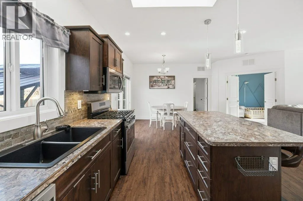 Discover this beautiful rancher in the newest phase of desirable Gallagher Lake Village Park. Built in 2018, this gorgeous ‘Caribou’ Show Home boasts 1391 sq ft with 3 BEDS, 2 BATHS, double car garage, powered workshop & solar panels. The bright, newly painted interior offers an inviting floor plan with 9’ ceilings & rich vinyl plank flooring. The kitchen features