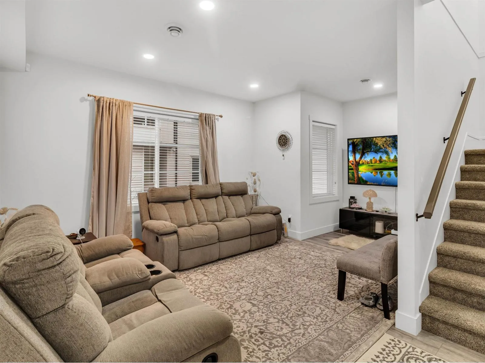 +"PublicRemarks": "PANORAMA MEWS- Welcome to this well-maintained 4 bed, 4 bath, 3-storey corner townhouse in a quiet, family-friendly neighbourhood. This home features a side-by-side garage, air conditioning, and rough-in for central vacuum. The ground floor offers a spacious bedroom with a 3-piece ensuite, ideal for guests or a home office. The main level boasts a bright corner L-shaped kitchen, separate living and family rooms, and a 2-piece powder room, perfect for entertaining. The top floor includes a primary bedroom with vaulted ceilings and walk-in closet, plus two generously sized bedrooms and a full bathroom. Side-by-side laundry is conveniently located in a closet. Close to parks, schools, and amenities. This one won't last long-book your showing today. (id:62650)"