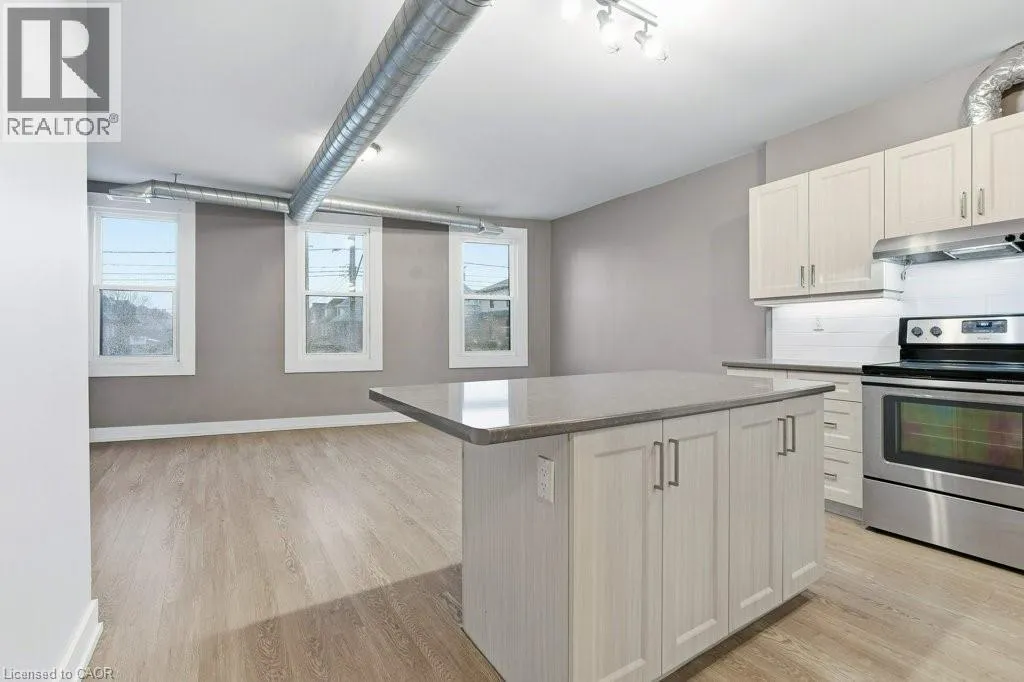 +"PublicRemarks": "Stunning 2-bedroom end-suite loft freshly completed from a full down-to-the-studs renovation. This bright, open-concept unit features a chef-inspired kitchen with eat-in island, subway-tile backsplash, ample cabinetry, and brand-new Whirlpool stainless steel appliances. Spacious living room with decorative fireplace and a wall of sun-filled windows. Includes in-suite Whirlpool washer/dryer, brand-new 4-piece bath with tub, central A/C and heating with personal climate control, and exceptional storage with large closets throughout. Ideally located in downtown Hamilton, steps to transit, Vintage Coffee Roasters, The Capitol Bar, and minutes to Gage Park, FreshCo, Tim Hortons Field, and the shops, restaurants, and amenities of Ottawa Street. Walk Score of 76. Well-managed building with security cameras and lighting. On-site parking available for $75/month + HST. Separately metered utilities—pay only for what you use. (id:62650)"