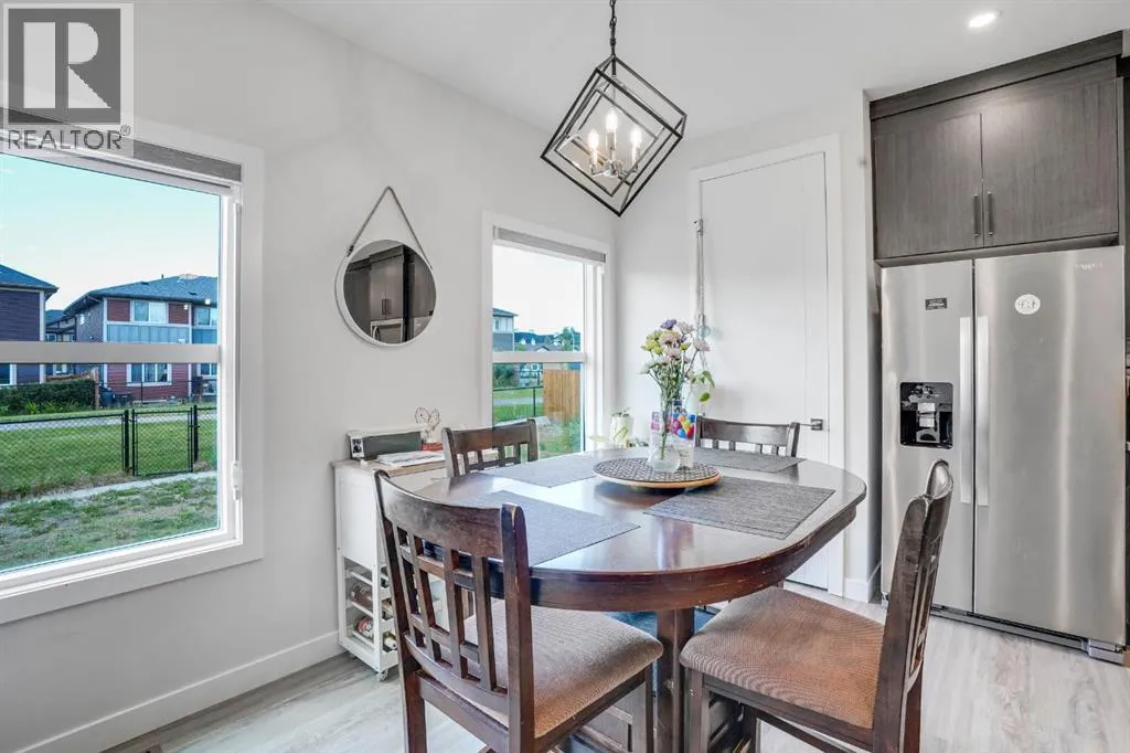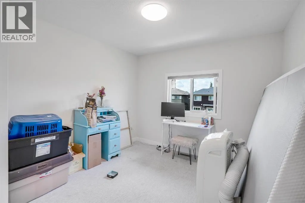 +"PublicRemarks": "Welcome to this stunning semi-detached home with a front-attached garage, nestled in the vibrant and family-friendly community of Midtown, Airdrie. Thoughtfully designed with both style and functionality in mind, this two-storey home is perfect for families or anyone seeking a modern, connected lifestyle. Step inside to a bright and contemporary kitchen overlooking the charming courtyard, complete with sleek countertops, stainless steel appliances, and a spacious centre island. The open-concept main floor flows effortlessly, creating the ideal space for everyday living and entertaining. Upstairs, you’ll find three spacious bedrooms, including a luxurious primary suite featuring a walk-in closet and a private ensuite. A convenient upstairs laundry and an additional full bathroom complete this level. An unfinished basement with its own side entrance, ready to be transformed into a space that fits your needs. Outside, enjoy a large backyard along with access to scenic walking paths, schools, shopping, and all of Airdrie’s best amenities just minutes away. (id:62650)"