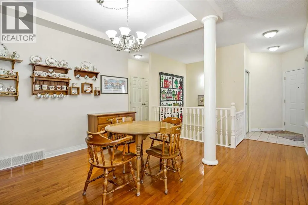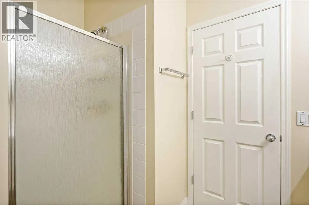 +"PublicRemarks": "Welcome to the sought-after neighbourhood of Panorama Hills in NW Calgary. This townhome/bungalow in the adult (+18) community of Emerald Park is an ideal fit both location and convenience-wise for those with busy lifestyles. With 2,500sq. ft. of living space, a fully developed lower level, 4 bedrooms, 3 bathrooms, a front-facing insulated attached double garage, and numerous upgrades, this is the ideal home. The main level is an open floor plan and boasts warm, solid hardwood floors throughout with linoleum in the kitchen. Adjacent and to the left of the foyer is a bedroom which could be utilized as a home office. The dining room is sizeable and highlights a tray ceiling. Down the hall is the cozy, well-windowed (bow window) living room with a charming, tiled gas fireplace. The kitchen is a study in efficiency. Sleek, white cabinets and pantry, matching tiled backsplash, white quartz countertops, Blanco double sink newer white appliances, an island/breakfast bar and an induction range with convection oven. The breakfast nook also features a bow window flooding the main level with tons of natural light. The roomy primary bedroom has a good-sized closet and a handy 4-pc. ensuite with quartz countertop. The main level is completed with a 3-pc. bath and a laundry room cleverly hidden behind fitted doors. Moving to the fully finished, carpeted and well-designed lower level, enter a large and comfy rec room and two additional large bedrooms, both with substantial closet space. A 4-pc. bath, utility room and storage space finish the lower level. Admittance to the rear, railed, and very private (no neighbours in the back) deck is via the living room. The deck is ready for barbeque season with the benefit of a gas line. Access to everything is an understatement regarding location. At the junction of Panorama Hills and Country Hills Boulevard and the numerous shopping centers and restaurants, close to Stoney Trail, various schools, day homes and churches, Nose Creek Park, Co untry Hills Golf Club, Cross Iron Mills and Calgary International Airport. Take note of how well this home has been cared for and the many upgrades and improvements, i.e. the kitchen, new garage door, water softener and heater, new furnace and the valuable additions of central air conditioning and central vac. Also consider the convenience of common area maintenance by a professional property manager. Do call for your private tour to avoid missing out on this great opportunity. (id:62650)"