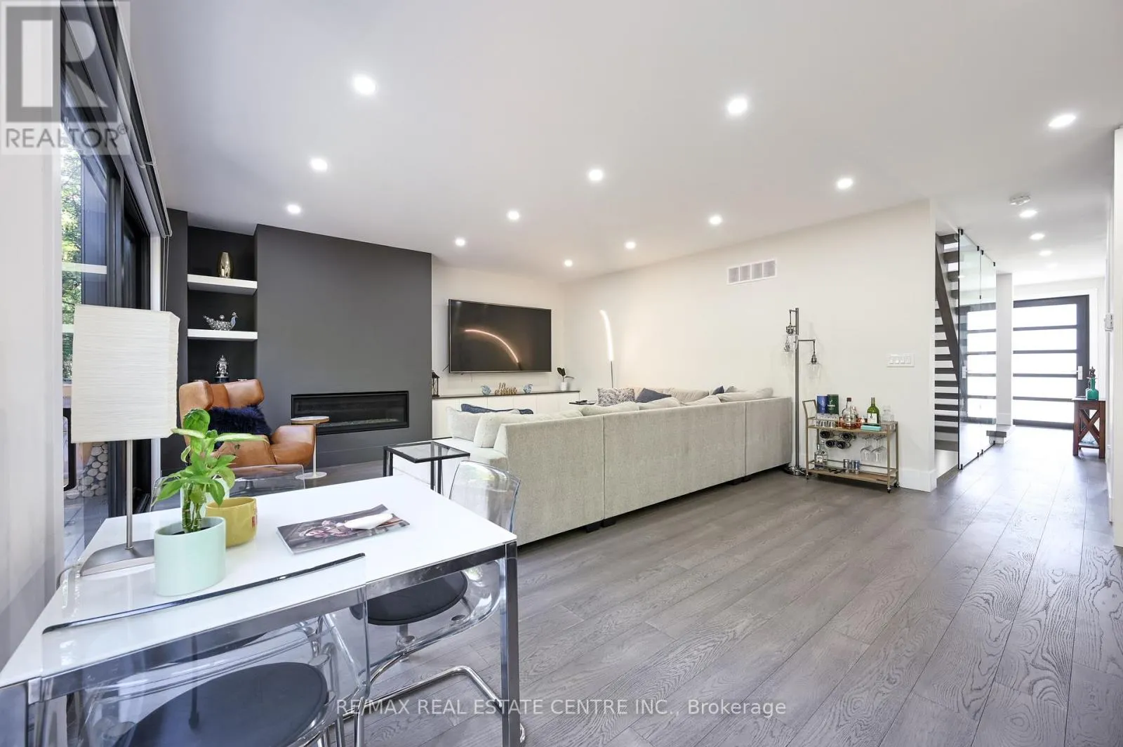 +"PublicRemarks": "Welcome to this Stunning Custom-Built modern home in Mississauga's highly sought after Lakeview community. Designed with elegance and functionality in mind, this residence offers over 3500 sq feet of Finished Living space with soaring ceilings, floor to ceiling windows and high end finished throw-out. If you dream of living near the water but are not ready to give up all the conveniences of the city, look no further. Beaming w/Natural light throw-out with massive Full Panel windows everywhere and huge skylight above the marvelous glass railing. Boasting high ceilings Top to Bottom. The main level features an open concept layout with a chef inspired kitchen boasting quartz countertops, premium stainless-steel appliances and a spacious island seamlessly flowing into the great room with a statement fireplace and walk out to a private backyard deck. Upstairs the primary suite is a true retreat with a luxurious spa like ensuite and his and her walk-in closets. Three additional bedrooms, each with their own ensuite, provide comfort and privacy for the whole family. The huge finished lower level includes two additional bedrooms, two full baths, above grade windows and two separate entrances, perfect for an in-law suite, guest quarters or entertainment space. Set on a 50 by 110 lot with a double garage and parking for up to six cars, this property combines modern design with everyday practicality. Located in vibrant Lakeview, you are just minutes from Lake Ontario, Waterfront trails, top rated schools, parks, shopping, transit and major highways. (id:62650)"