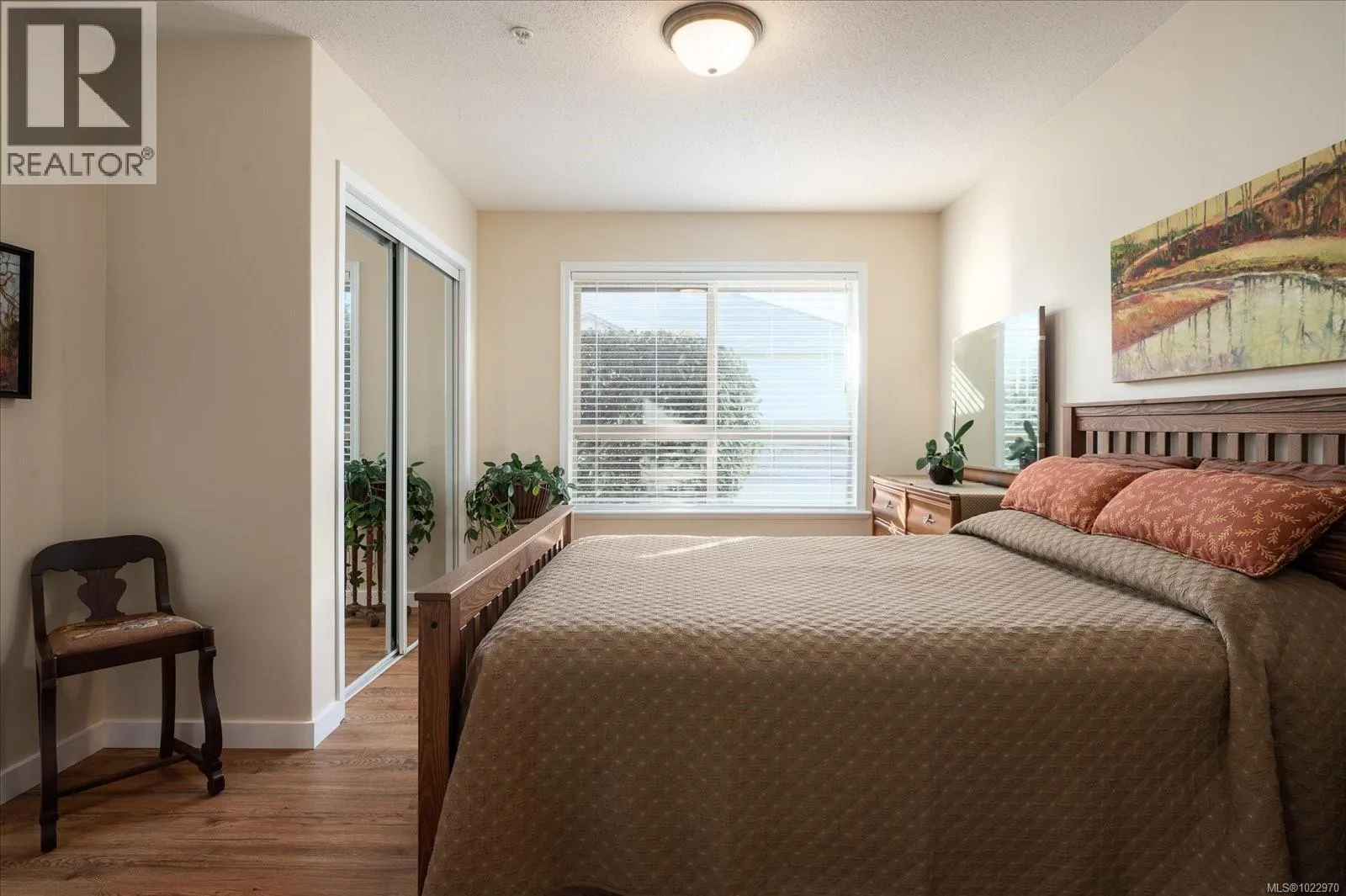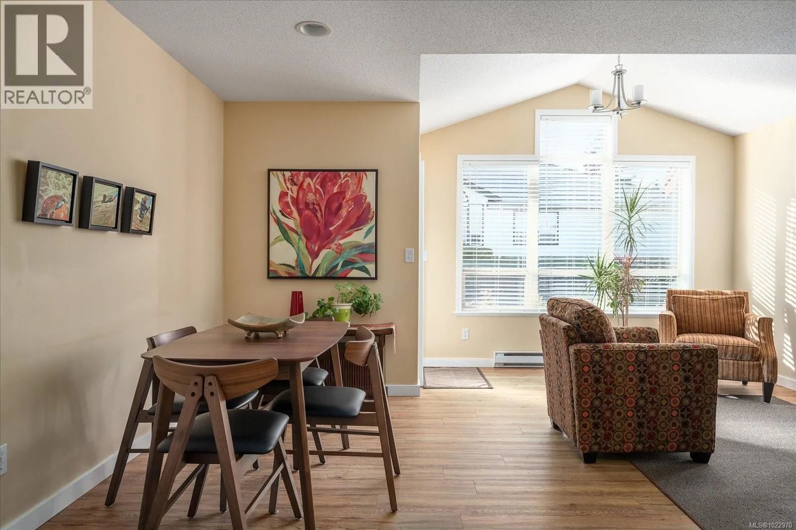 Bright and well designed south-facing patio home in the sought after Madison Court 55+ community. This rare 2 bedroom, 2 bathroom one-level residence offers open living with vaulted ceilings, large windows, and excellent natural light. Updated hot water tank, flooring, & window coverings. The layout supports aging in place with step-free living and flexible access. Enter through your own private