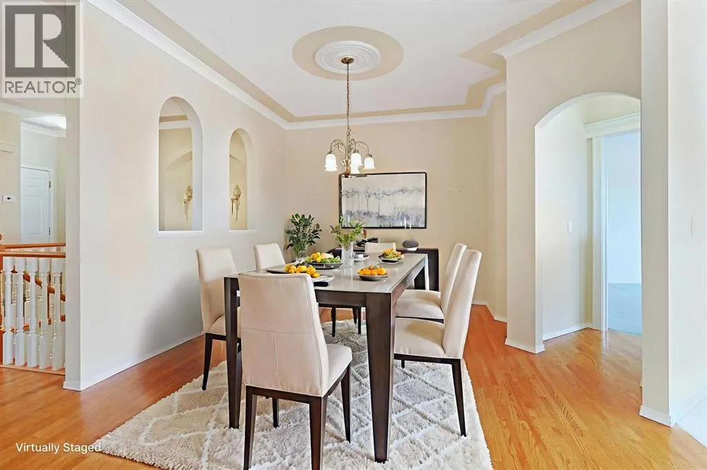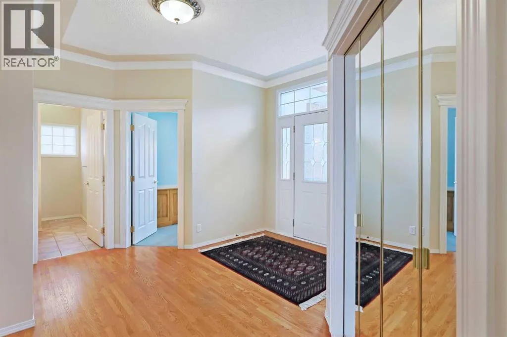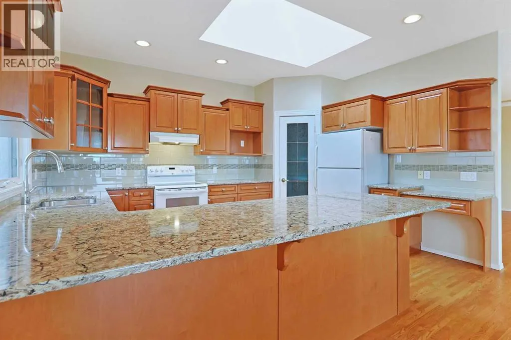 +"PublicRemarks": "**OPEN HOUSE: Sat Jan 17, 2026 from 12noon to 2:30pm** Lovingly maintained by the original owners, this wonderful home is ready & waiting for a new family to make it their very own, located here on exclusive Hamptons Heights backing onto the prestigious Hamptons golf course. Surrounded by breathtaking views of the 16th hole & distant horizon, this mint condition walkout bungalow enjoys beautiful hardwood floors & central air, 3 bedrooms + den, 2 toasty gas fireplaces & 2 fantastic decks to take in the glorious wide open views. Complemented by 9ft ceilings & expansive picture windows, you will just love the inviting & airy feel of the main floor with its stunning living room with 11ft stepped ceilings & 3-sided fireplace, elegant open concept formal dining room & sun-drenched maple kitchen with skylights & quartz counters, walk-in pantry & white/stainless steel appliances. A French door from the dining nook leads out onto the L-shaped balcony…with a covered section & almost 300sqft of outdoor space. The relaxing owners’ retreat has a big bay window with views of the golf course, great-sized walk-in closet & jetted tub ensuite with double vanities & separate shower. The beautifully finished walkout level – with infloor heating, has 2 large bedrooms (1 with a big walk-in closet), another full bathroom, loads of extra space for storage & fantastic games/rec room with wet bar, stone-facing fireplace & built-in cabinets. The main floor also has a dedicated home office with desk (included) & built-in bookcases, & laundry room complete with Maytag washer & dryer, sink & built-in cabinets. In addition to the balcony, you’ve also got a 300+sqft patio in the backyard, which is fully fenced & landscaped, & comes complete with winding gardens, mature shrubs & trees. Other features include crown moldings, finished garage, red brick façade & clay tile roof, Hunter Douglas blinds, 2 hot water tanks, central vacuum system & storage shed in the backyard for your gardening tools. Not -to-miss opportunity to make your home on one of the Hamptons most desirable streets, only a few short minutes to all community amenities (Hamptons School, tennis courts & sports fields), shopping at the Hamptons Co-op & Edgemont Superstore, plus quick & easy access to Crowfoot Centre & LRT, University of Calgary, hospitals, major retail centers & downtown. (id:62650)"