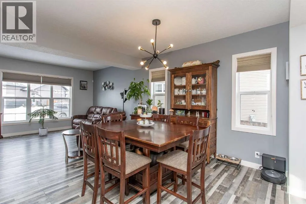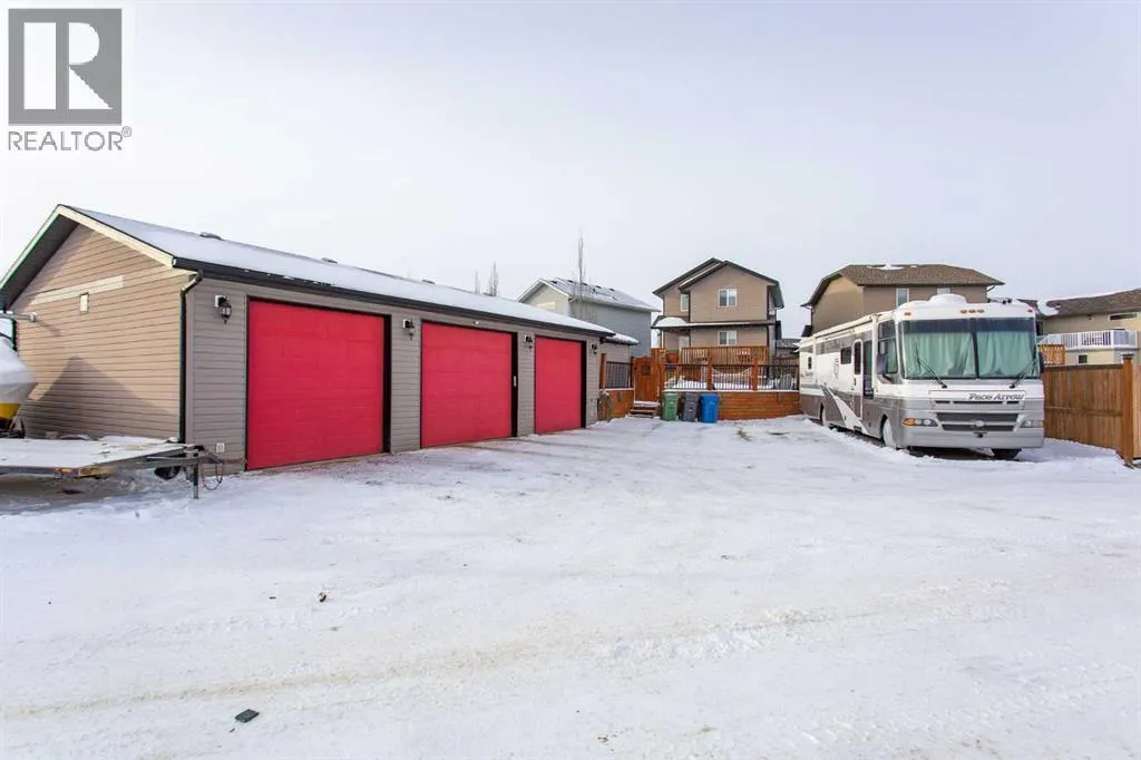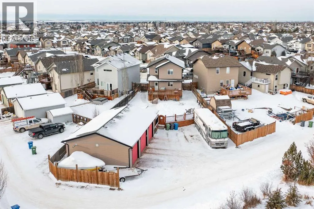 +"PublicRemarks": "This well-kept two-storey detached home offers a functional layout with room for the whole family. The main floor features an open concept design with a bright living room, a spacious dining area that easily fits a full-size table, and a kitchen finished with oak cabinetry, laminate counters, a central island with breakfast bar, corner pantry, tiled backsplash, and modern vinyl tile flooring. A good-sized front entry with a walk-in closet and a convenient half bath complete the main level.Upstairs you’ll find three bedrooms with carpet flooring, including a generous primary bedroom with dual closets and a 4-piece ensuite featuring an oak vanity, tub/shower combo, and linen shelving. Two additional bedrooms offer walk-in closets, making the upper level practical and comfortable for family living. The fully developed basement adds valuable space with a cozy family room featuring an electric fireplace, tiled TV surround, and wiring for theatre speakers. There’s also a dry bar with cabinetry and shelving, a functional laundry room with tile flooring and storage, an additional bedroom ideal for a teen or home office, and a well-finished 4-piece bathroom.The yard is a standout feature, set on a 9,000+ sq ft pie-shaped lot backing onto a farmer’s field, offering privacy and open views. The fully fenced yard includes a wood deck, plenty of green space, and a 28’ x 44’ heated detached shop with radiant heat, 13.5'ceilings, 10’ triple doors, and ample parking for vehicles, trailers, or toys. Additional updates include a furnace replaced in 2024. Located close to green spaces, parks, walking trails, schools, and recreation centres, this home offers solid value, space, and versatility in a great setting. (id:62650)"