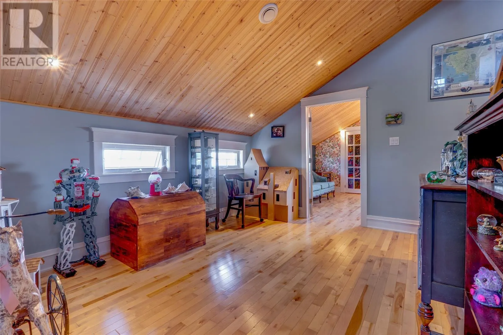 Perched on 8.26 private acres overlooking the Atlantic, this one-of-a-kind lighthouse-inspired home in Bishop’s Cove is a true masterpiece of craftsmanship and design. Featuring three bedrooms and one and a half baths, the home offers panoramic 360-degree ocean views from the top-floor wraparound deck that will take your breath away. Every element has been hand-selected and thoughtfully crafted, from the