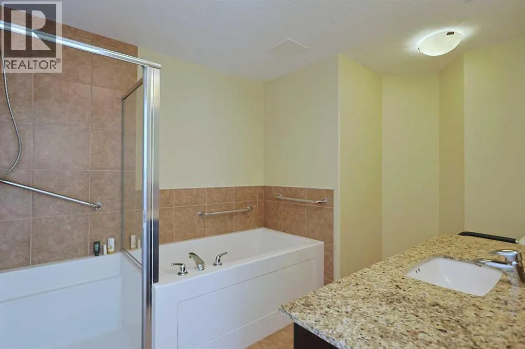 +"PublicRemarks": "Perched on the 11th floor of the Monterey One building at Groves of Varsity, this thoughtfully designed condominium offers expansive views and a refined living experience in one of Calgary’s most established luxury complexes. Constructed with concrete and steel, the residence provides a quiet and secure setting. With over 1,000 square feet of developed space, the home features two bedrooms and two bathrooms, balancing comfort with functionality. The interior is defined by 10-foot ceilings and full-height windows that draw in natural light and frame open city and mountain outlooks. Hardwood flooring grounds the living and dining areas, creating a cohesive flow throughout the main living space. The living room is welcoming and well proportioned.. Adjacent to it, the modern kitchen combines style and practicality with tile flooring, rich wood cabinetry, quartz countertops, stainless steel appliances, plenty of cupboard space and a breakfast bar that adds casual seating. The dining area opens to a Juliet balcony and offers views toward downtown, making it a pleasant setting for both daily meals and evening gatherings. The primary bedroom is positioned to take full advantage of the scenery, with outlooks that stretch across the city and toward the mountains. It includes a walk-in closet and cork flooring, leading into a five-piece ensuite designed with a spa-like feel. A soaker tub, standalone shower, dual sinks, and quartz countertops complete the space. The second bedroom is equally versatile, currently functioning as a home office with a Murphy bed and integrated desk, allowing it to adapt easily to changing needs. A three-piece bathroom nearby features an oversized glass-enclosed shower and quartz countertop, offering convenience for guests or additional household members. A dedicated laundry room includes a full-size stacked washer and dryer along with extra storage, while air conditioning ensures comfort during warmer months. The home comes with one titled undergro und heated parking stall and a titled storage locker. Residents of the building have access to a range of shared amenities, including a fitness area, steam rooms, owners’ lounge, and an outdoor rooftop terrace with BBQs. A professional building nearby adds convenience with services such as medical offices, a pharmacy, and cafés. Short-term rentals are not permitted, and pets are welcome with board approval. The location places you steps from the Dalhousie LRT Station and directly across from the shops, dining, and services of Dalhousie Station. Market Mall, Northland Mall, and Crowfoot Crossing are all minutes away, as are major routes including Crowchild Trail, Stoney Trail, and downtown Calgary. The University of Calgary, SAIT, Silver Springs Golf & Country Club, Bowmont Park and its river pathways, Nose Hill Park, Foothills Hospital, and Alberta Children’s Hospital are all within easy reach, making this an ideal setting for both lifestyle and accessibility. Check out the 3D tour and floor plans! (id:62650)"
